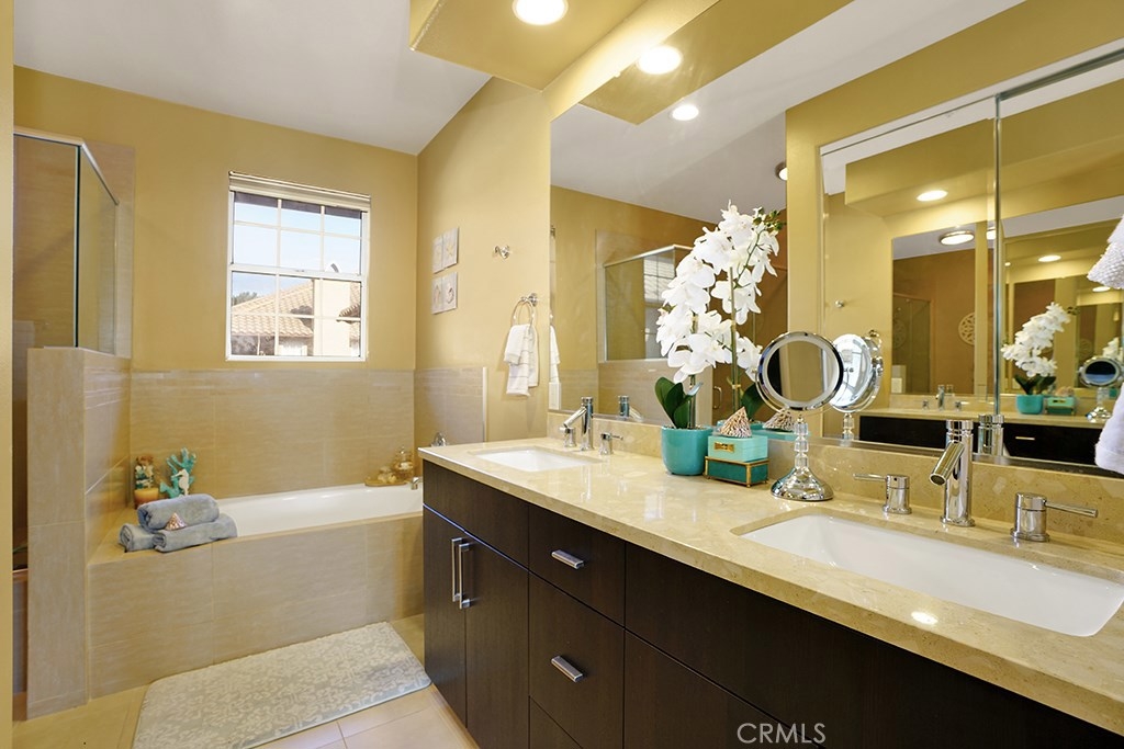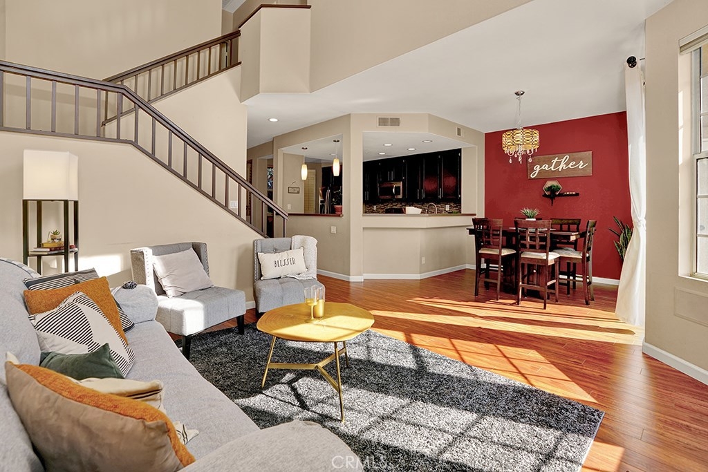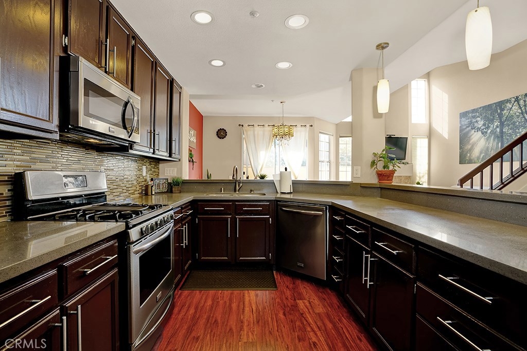 This is a MUST SEE home in the beautiful community of Arcada in Tustin Ranch! This condo features 3 bedrooms, 3 full baths and 1,620 sqft of living space. The home has vaulted ceilings throughout, plenty of natural light, and laminate flooring in the living and dining area. The open floor plan flows from the living area to the kitchen and dining area. This home is highly-upgraded. The kitchen boasts gorgeous quartz countertops, subway tile backsplash, stainless steel appliances, and abundant counter and cabinet space. The master bedroom has vaulted ceilings, large master bath and two closets. Sizable secondary and third bedrooms, with natural light and high ceilings. New AC unit. This home is in prime location conveniently located within walking distance of award-winning schools, and a short drive away to Tustin and Irvine Marketplace, golf courses, Tustin Sports Park, Laura Glen Park and within minutes of the freeway. Don't miss out on this rare opportunity!