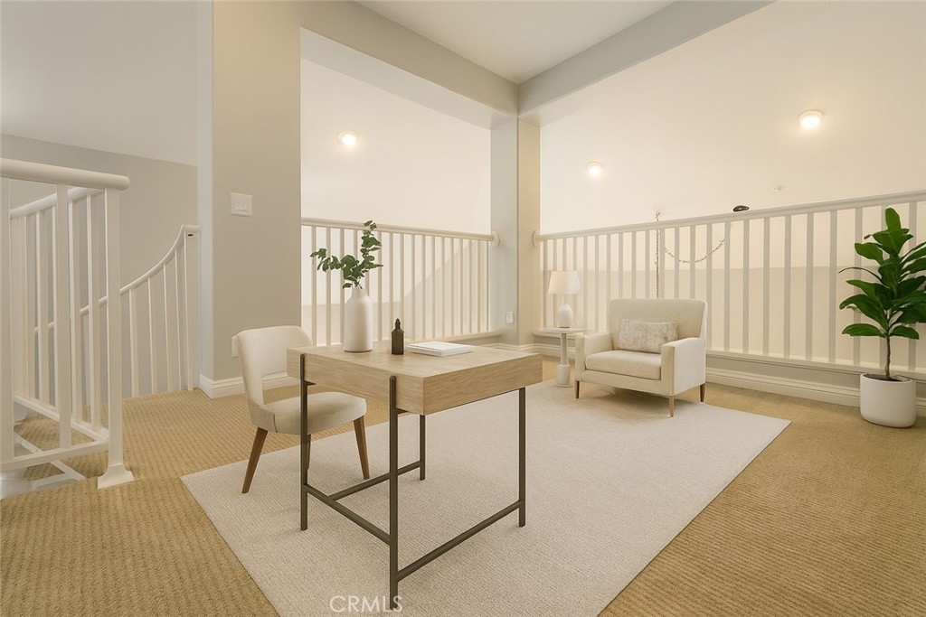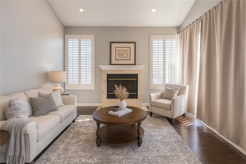 Welcome to this beautiful end-unit condo in the highly desirable Arcada community of Tustin Ranch — a home that truly has it all. With two bedrooms, two bathrooms, and a versatile loft, this residence blends comfort, style, and convenience in one of the area’s most sought-after neighborhoods. Step inside to an open and bright living room where natural light pours in through the sliding door and upgraded windows with plantation shutters. A cozy fireplace anchors the space, creating a warm and inviting atmosphere that flows seamlessly into the dining area. The remodeled kitchen is a chef’s delight, featuring quartz countertops, all stainless steel appliances, and a thoughtful layout that makes both cooking and entertaining a joy. The larger primary bedroom offers a good-sized private space with direct access to a patio, while the remodeled bathrooms showcase modern finishes and a fresh, updated feel. Upstairs, the spacious loft provides endless possibilities — it can serve as a home office, a family room, a quiet retreat, or even a third bedroom. Throughout the home, recessed lighting and gorgeous laminate flooring add a touch of sophistication, while the convenience of an inside laundry room enhances everyday living. Outdoor living is just as appealing, with a covered balcony staged for relaxation and entertaining. The community itself offers a sparkling pool and BBQ area, perfect for enjoying Southern California’s sunshine. Beyond the property, the location is unbeatable: close to the 5 freeway, award-winning schools, and the vibrant Tustin Marketplace, where shopping, dining, and entertainment are always within easy reach. This condo is more than just a home — it’s a lifestyle. With its thoughtful upgrades, flexible spaces, and prime location, it’s truly a must-see in Tustin Ranch.
