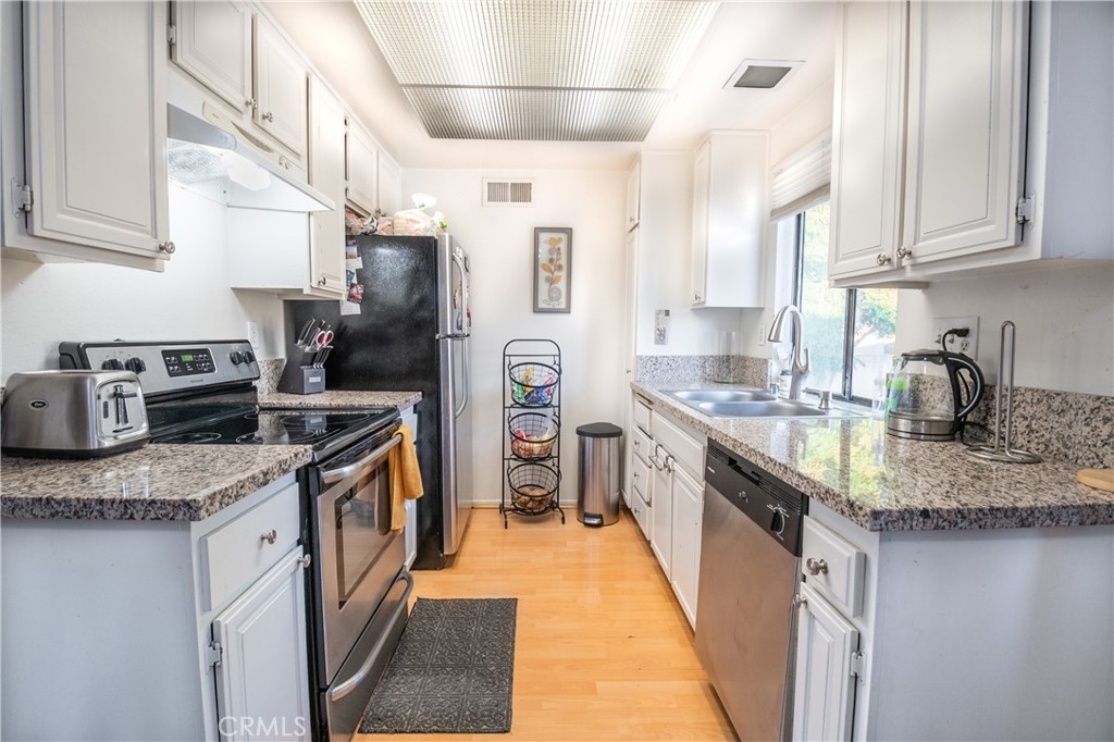 This recently upgraded home in the gated community of Briarcliff Village of Tustin offers an open floorplan with spacious living room, adjacent dining area open to a bright and sunny kitchen with granite countertops, white cabinets, and stainless steel appliances. The bathroom cabinetry and fixtures have also been upgraded. The balcony/deck off the living room is spacious enough for lounging and BBQ. Washer/Dryer hookups are located in the direct access garage and a convenient second dedicated enclosed parking space is adjacent to the garage. This condo has all the living area upstairs with its staircase having direct access from the garage door (with opener). HOA Dues covers all of the exterior building including the roof. The community amenities include a pool and spa area. The home has convenient access to the 55/I-5 freeways, shopping, local schools (including Foothill High!) and just a few blocks away from the charm and convenience of Tustin’s historic Old Town.