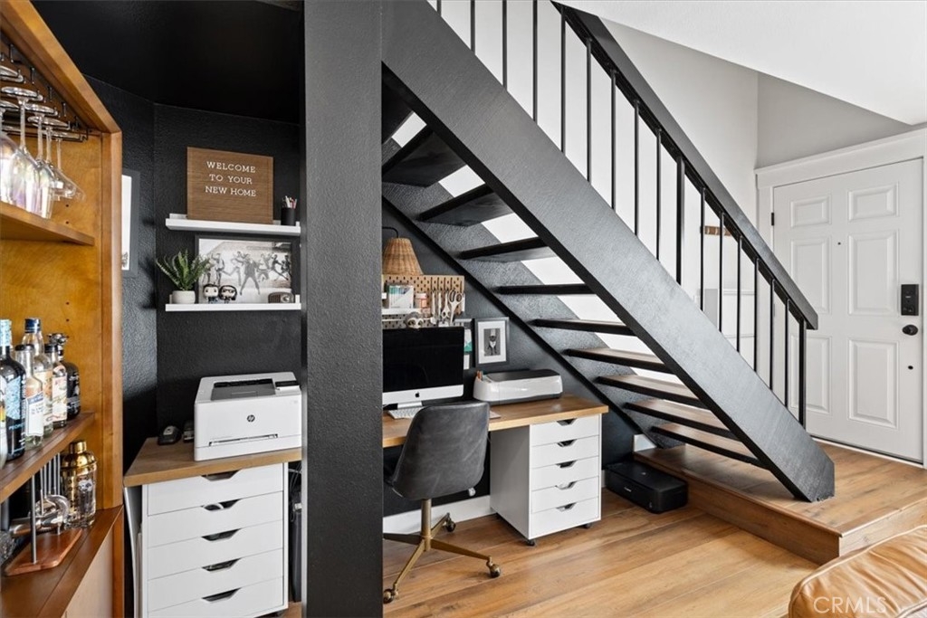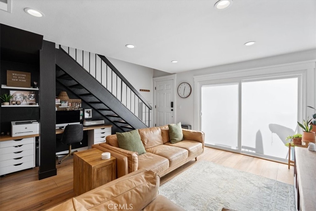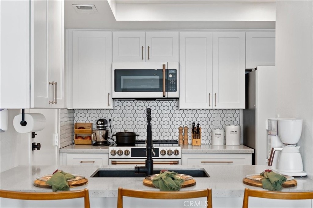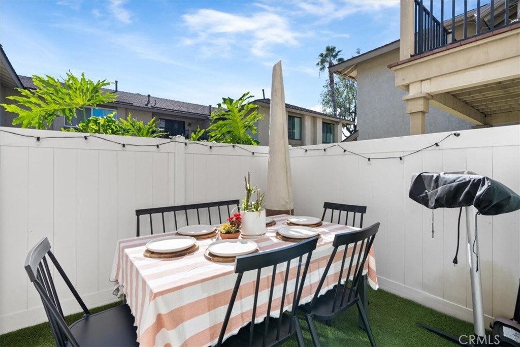 Welcome to this stunning townhome-like, upgraded 2-bedroom, 1.5-bath condo with no one below you and no one above, that exudes modern style and comfort. Step inside to find gorgeous wood-like luxury vinyl flooring flowing seamlessly throughout the home, complemented by fresh, contemporary paint and recessed lighting. The upgraded kitchen features sleek quartz countertops, newer GE Café appliances, and newer cabinetry—perfect for anyone who loves to cook or entertain. Both bathrooms have been tastefully remodeled with stylish finishes and modern fixtures. This meticulously maintained home also includes a whole house fan installed in 2023 for year-round comfort and energy efficiency. The extra-long single-car garage provides plenty of storage space, complete with built-in cabinets. Residents enjoy access to a community pool and well-maintained common areas, all within a secure gated setting. Conveniently located near shopping, dining, freeway access, parks, and top-rated schools, this move-in-ready condo offers the best of Tustin living.