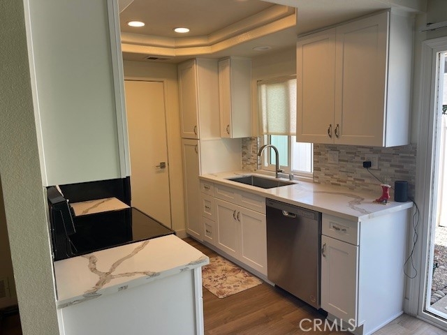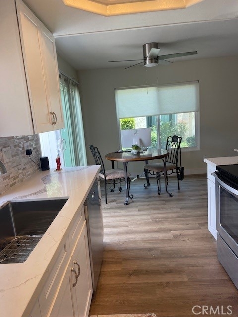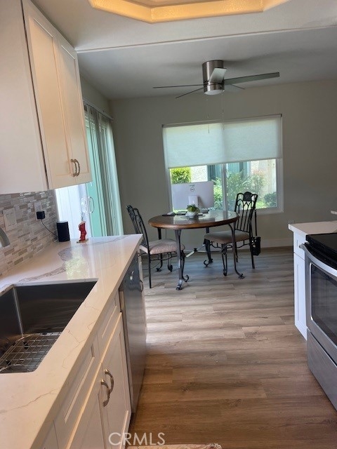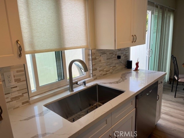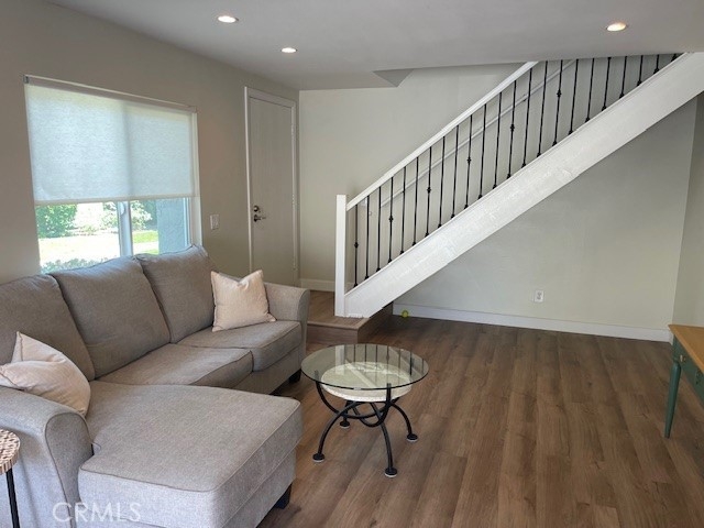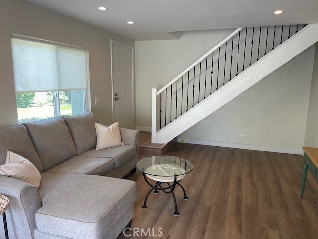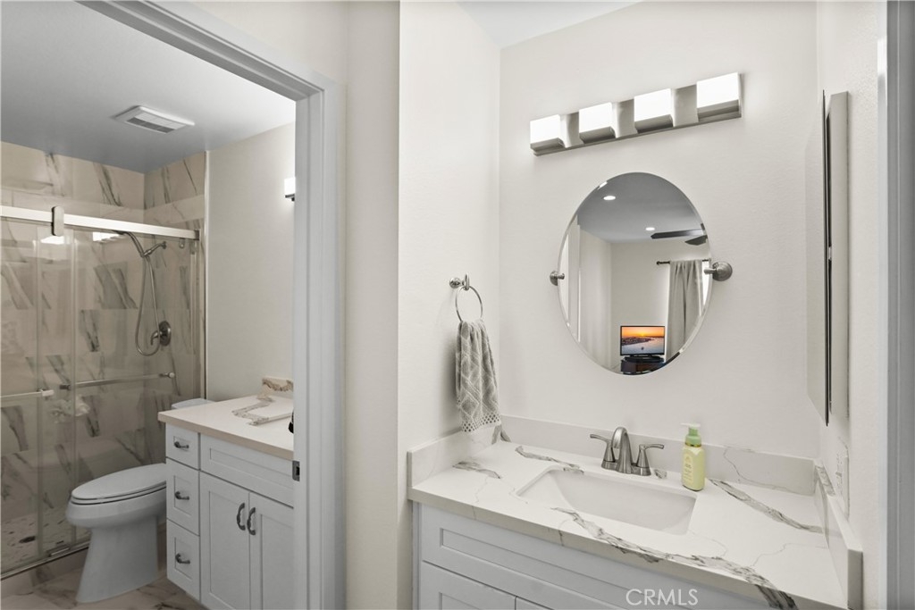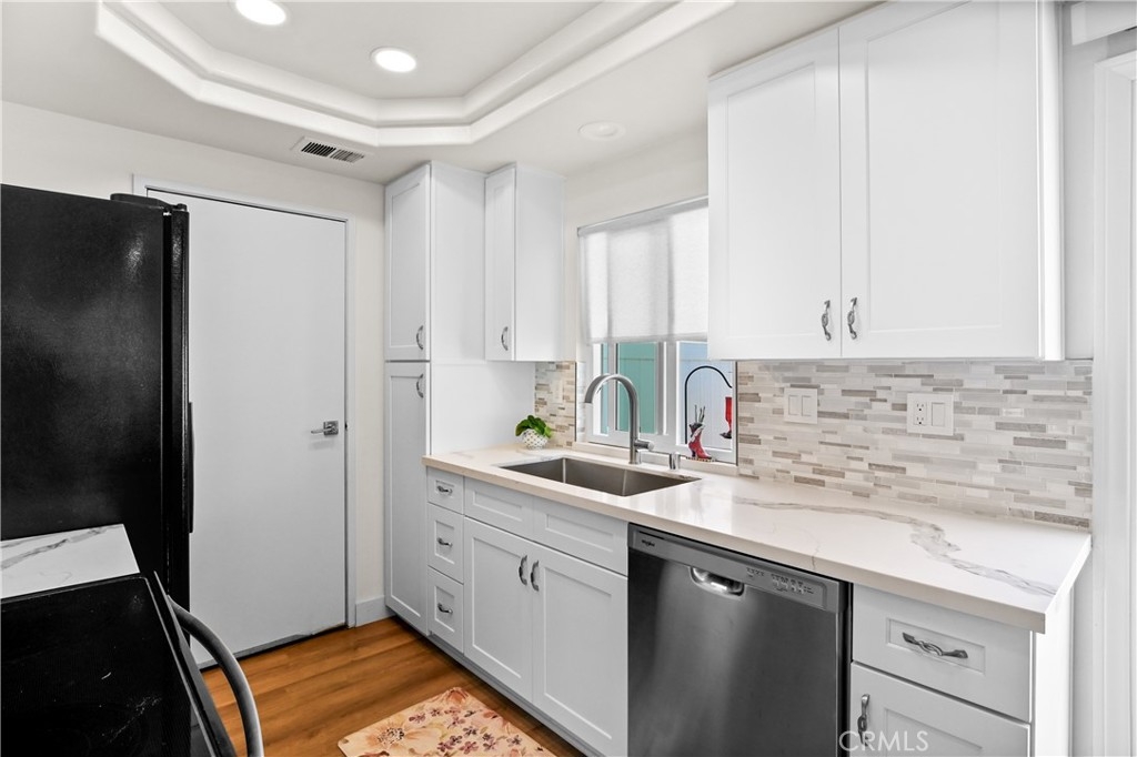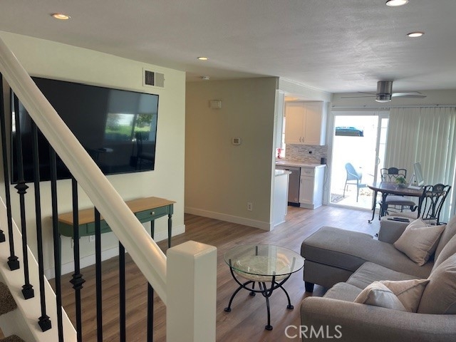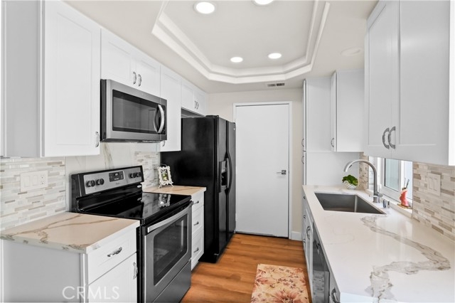 Beautiful two-Story Condo end unit. Beautifully upgraded including new Kitchen Cabinets and Quartz Counter tops. Waterproof Luxury Vinyl Floors, and low profile baseboards, Remodeled baths including walk in shower with new designer marble and Glass barn style shower doors. Dual Payne energy saving windows new paint and ceiling fans throughout, walk in closet in Master bedroom, Sunny patio end unit. Gated community with large pool and spa plenty of parking. Excellent location just blocks from Old Town Tustin, shopping, dining and schools.