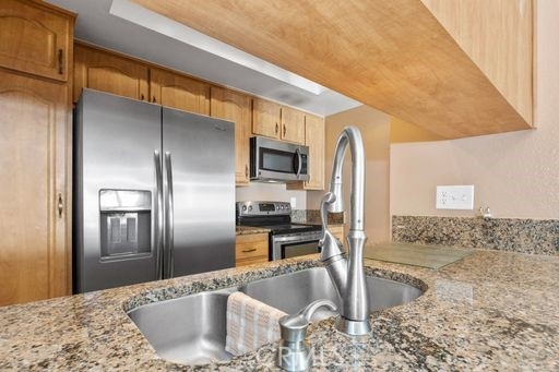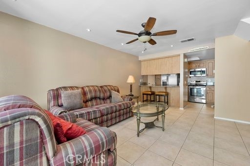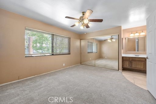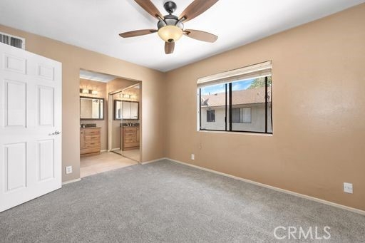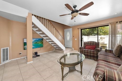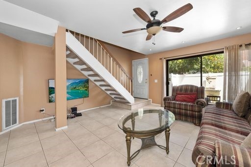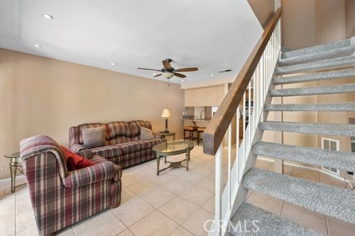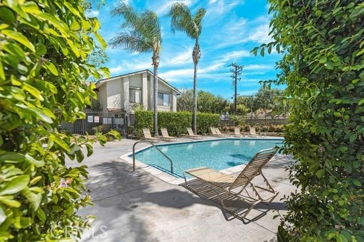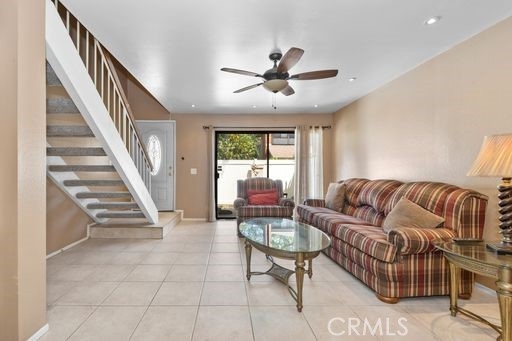 Townhome style in a gated community with one car garage, laundry hook ups in garage, living room with ceiling fan and tile flooring, recess lighting, kitchen with granite countertops, dishwasher, new garbage disposal and 1/2 bathroom is downstairs; bedrooms and stairs have new carpet and each room with ceiling fan and mirror closets. Wonderful and well care gated community, with pool, jacuzzi, bathrooms and shower in pool area. Lots of parking...