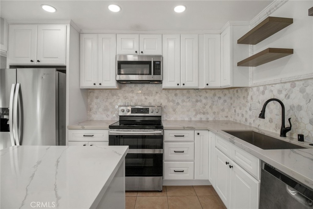 Charming 3 bedroom, 2.5 bathroom, 2 story townhome with greenbelt views in the community of Brighton Terrace in Tustin! Enjoy a light, bright floor plan with laminate wood flooring, an inviting fireplace in the living room, and a gourmet kitchen. The kitchen offers a center island, quartz-style countertops, elegant white cabinetry, and stainless steel appliances. The bedrooms feature spacious closets with a shower-in-tub in the primary bathroom. Sliding doors lead to the upper level balcony and downstairs, sliding and panel doors lead to the outdoor patio. Additional property highlights include garage laundry hookups and a 2 car detached garage. Community amenities include a swimming pool and spa. Convenient to nearby schools, shopping plazas, dining, and major freeways!