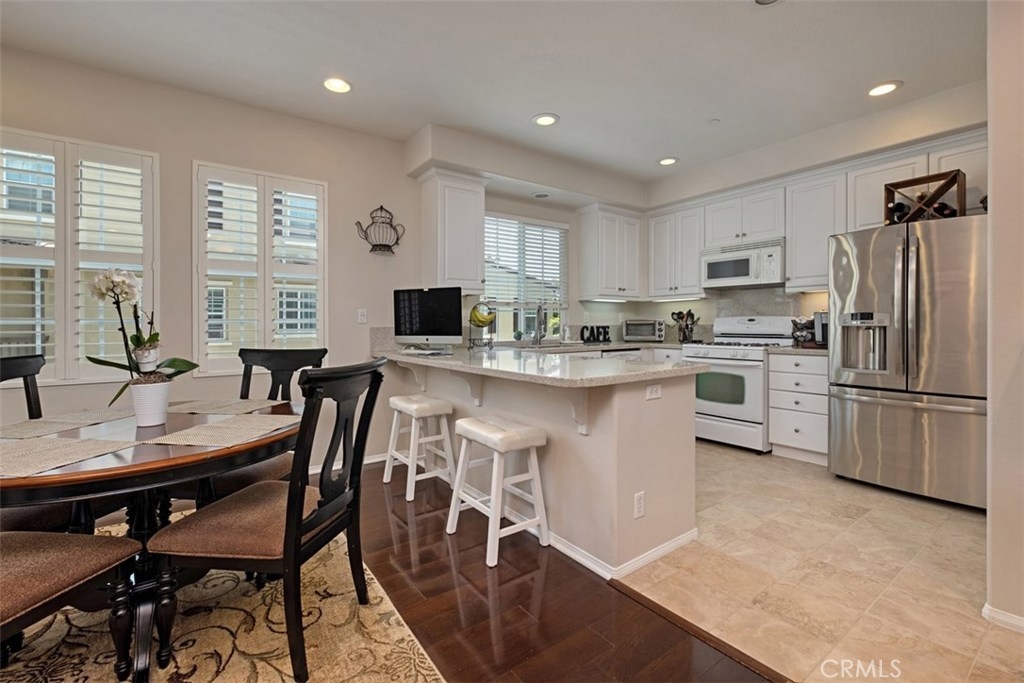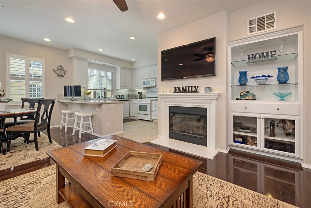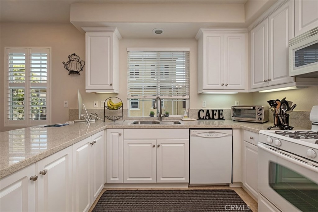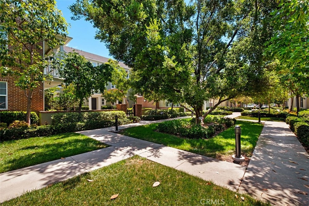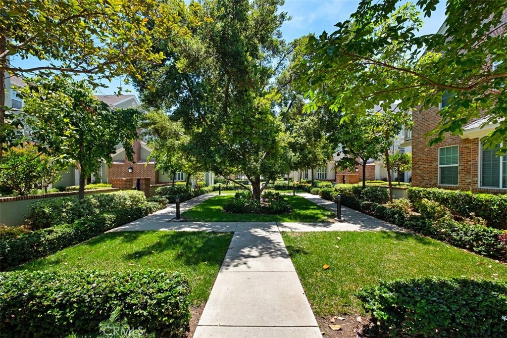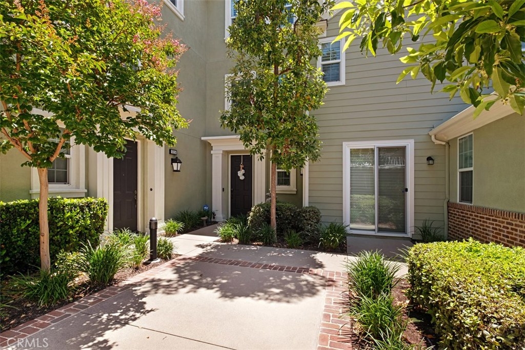 Beautiful and charming townhome sweetly nestled in the highly desirable Cambridge Lane neighborhood of Columbus Square. Elegant, lush and well-maintained greenbelts lead to the lovely, gated, tree-lined courtyard entrance. Light, bright & open floor plan, perfect for gracious living, relaxing and entertaining features 1,324sf of living space with 2 spacious bedrooms and 3 bathrooms. Gorgeous walnut floors, recessed lighting, designer color palette, plantation shutters, fireplace, custom glass shelving and built-ins in the spacious living room. Wonderful, bright, open kitchen w/ large window for tons of natural light to stream in, breakfast bar/counter, generous cabinetry w/ under-cabinet lighting and crown molding, large walk-in pantry and ceramic tile flooring. Fabulous master bedroom suite with walk-in closet and large master bath with dual sinks. New light fixtures and sink hardware in all bathrooms. FAH, A/C, separate inside laundry room and great 2-car garage with direct access. Resort-style community amenities include, pool, spa, basketball courts and several parks. Walking Distance to the New STEAM Heritage Elementary School and the Recently Completed Village Shopping Center. Also located in close proximity to shopping and restaurants at The District and The Marketplace, freeways, job centers, and the John Wayne Airport making Columbus Square one of the most sought after communities in Orange County. This unit is priced to sell and will not last, so don’t miss out!