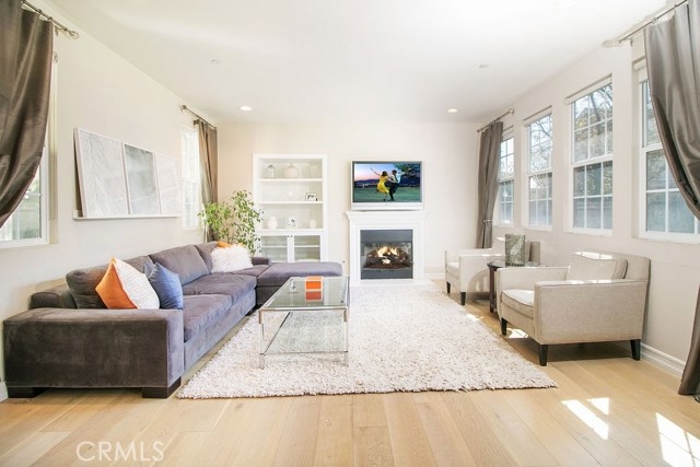 Welcome to 15245 Kensington Park Drive in the sought after community of Columbus Square, part of the growing Tustin Legacy. This Cambridge Lane model is rarely available and extremely popular with 3 bedrooms, 2.5 bathrooms in approximately 1676 square feet. From the moment you walk in, you are greeted by rustic wood floors that offer warmth and charm. The comfortable two level floor plan feels like a single family home with a spacious great room open to the kitchen and dining area. A cozy fireplace will take the winter chill away while the many windows offer an abundance of natural light. Enjoy access to a well thought out garage with built in storage cabinets, storage closet and a rare private driveway with parking for two cars! Enjoy all the amenities that this resort inspired neighborhood offers with a Junior Olympic swimming pool, spa, clubhouse with meeting rooms, workout room, several parks, sport court and many neighborhood activities. Walk to the Village of Tustin Legacy Shopping Center with Stater Brothers, Yogurt Land, Dunkin Donuts and much more! Zoned for Heritage Elementary, a STEAM school and Legacy Magnet Academy schools to be open in August 2020. Steps to the soon to open Veterans Sports Park. Convenient to freeways, John Wayne Airport and the beautiful OC beaches, life is good in the neighborhood!