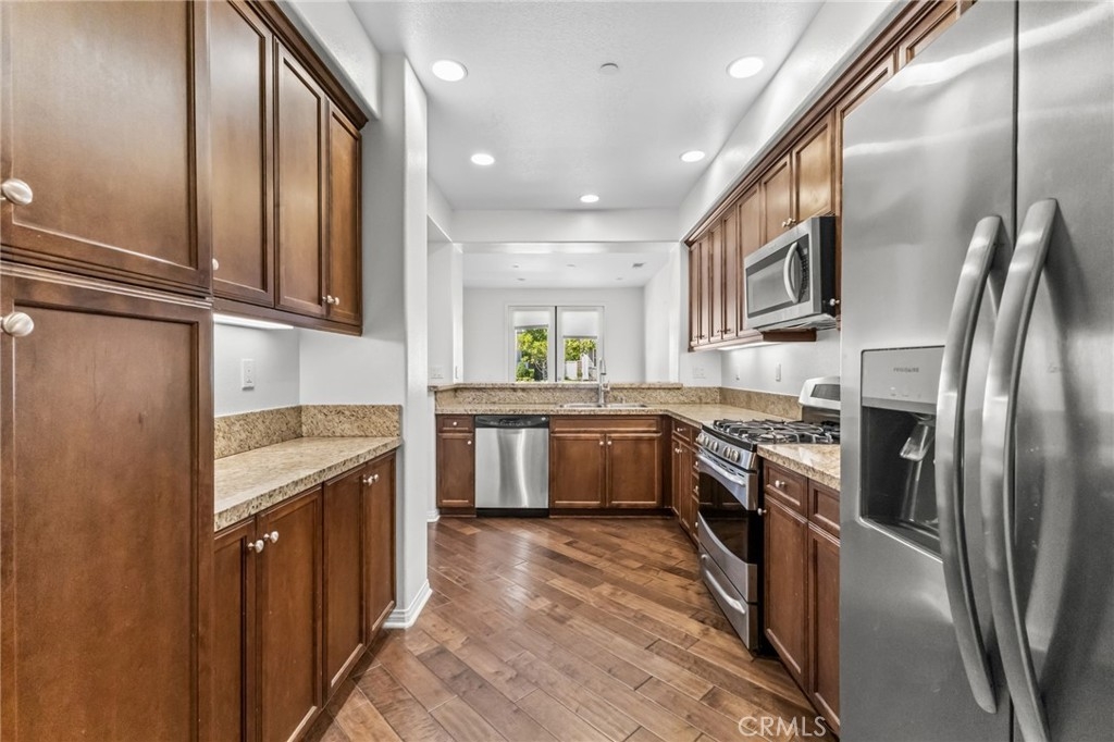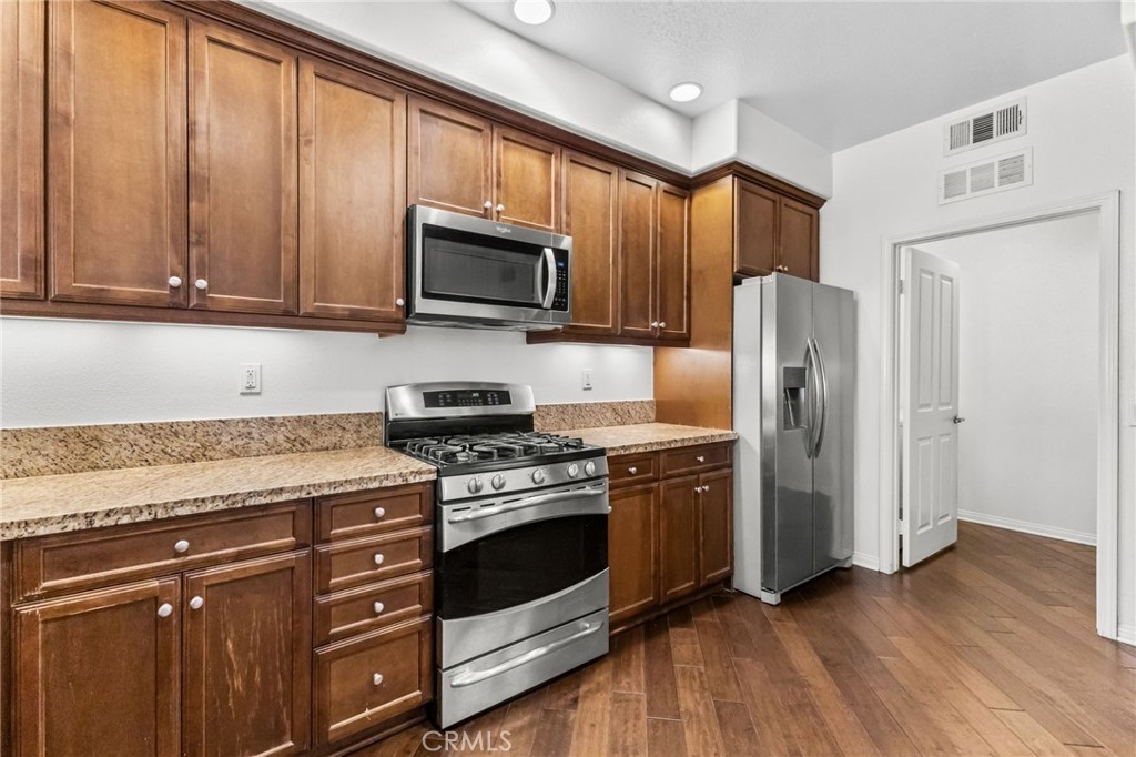 Welcome home to 1410 Lexington St, an elegant 3-bed, 3-bath, 2,000 sq ft single-family residence built in 2007 and set on a tree-lined street in coveted Tustin. Manicured hedges, a classic Colonial-inspired façade, and sun-filled rooms create irresistible curb appeal while delivering modern comfort inside. The gourmet kitchen showcases slab-granite counters, a full backsplash, rich espresso cabinetry, and stainless-steel appliances including a five-burner gas range, built-in microwave, French-door refrigerator, and dishwasher. A breakfast bar opens directly to the main living space, keeping conversations flowing during casual gatherings. The open-concept living and dining area offers soaring ceilings, recessed lighting, and French doors that spill out to a private patio for seamless indoor–outdoor living. Upstairs, a versatile loft features custom built-in cabinetry perfect for a home office, homework station, or creative studio. The primary suite is a true retreat with a generous bedroom, walk-in closet, dual-sink vanity, soaking tub, and separate shower. Two additional spacious bedrooms, a full hall bath, and a convenient downstairs guest bath complete the thoughtful layout. Recent upgrades include engineered hardwood flooring, plush neutral carpet, dual-pane windows, an indoor laundry room, freshly painted interiors, and an attached two-car garage with direct entry and extra storage. Minutes from The District at Tustin Legacy, The Market Place, top-rated Tustin USD schools (including Beckman High School), parks, dining, and major arteries like the 5/55/405 freeways, 261 Toll Road, and John Wayne Airport, this home offers an effortless Southern California lifestyle.