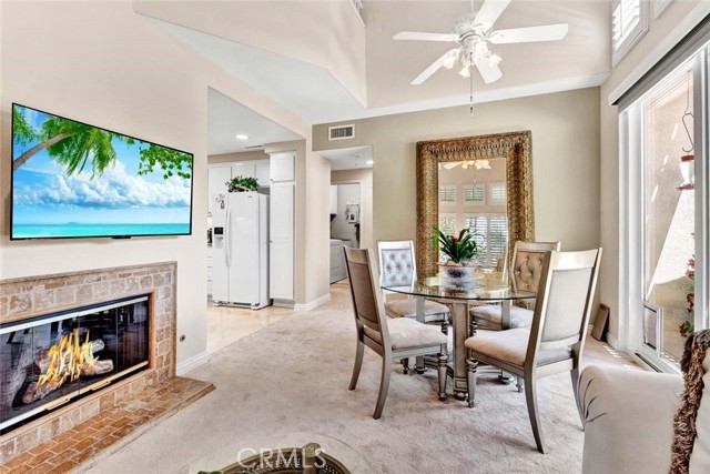 Welcome to 2645 Dietrich Drive, a highly coveted corner unit located in the prestigious Cantada Community of Tustin Ranch. This private townhome features two bedrooms, two bathrooms and an open floor plan that boasts soaring high ceilings and plenty of natural light throughout. The family room, complete with a cozy fireplace, plantation shutters, and a ceiling fan, opens to the dining area which has sliding door access to the balcony. The light and bright kitchen includes quartz countertops, a 4-burner gas range stove, recessed and under-cabinet lighting, and ample counter and cabinet space. The upstairs landing serves as an office space. The private master suite includes mirrored closet doors, built-in storage cabinets, and a remodeled en-suite bath with gorgeous travertine floors, dual vanities, and a walk-in shower. The private balcony enjoys tranquil views of the surrounding mature trees. Additional features include an indoor laundry room with cabinets and direct access to a single-car garage with built-in cabinets. The community boasts a resort-style pool and spa plus a barbecue area. HOA includes trash. Walk to Peters Canyon Elementary School and Pioneer Middle School, as well as nearby hiking and biking trails at Peters Canyon Regional Park, Irvine Regional Park and Citrus Grove Park. Walk to Pioneer Park and enjoy a summer splash pad, basketball court, covered pic-nic seating, large grass area and playground. Enjoy shopping and dining at the Tustin/Irvine Marketplace and a Short Drive to Tustin Ranch Golf Course, John Wayne Airport, and easy access to the 241/261 Toll Roads and 5/55/405 freeways. Don’t miss out on 2645 Dietrich Drive!