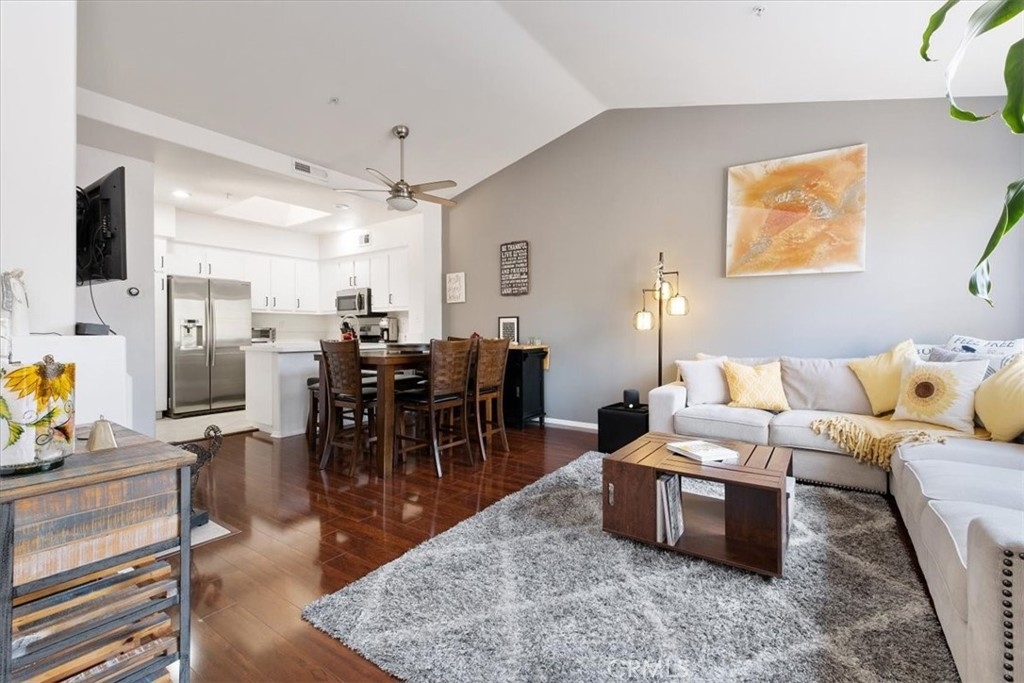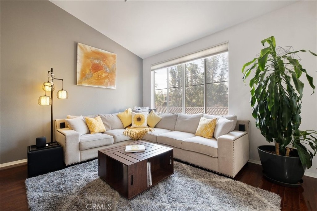 Upgrade your life now with this move-in ready two bedroom townhome situated in the highly desirable Cantada Community in Tustin Ranch. Upon entering, the inviting living/dining area with vaulted ceilings and a cozy gas fireplace will immediately draw you in. The wood floors and ample natural light continue from the updated kitchen and living area to the large master bedroom with a walk-in closet. The master bath has a dual vanity, a glass-enclosed shower in tub, private commode, and tons of storage. Upstairs is a large loft-style bedroom that could be perfect as a home office, a guest bedroom, or an entertainment room. Laundry hookups for washer and dryer are located conveniently in the garage, and the beautiful private patio adds outdoor living space with privacy and tranquility. This property is walking distance to award-winning schools and several expansive local parks where you can enjoy hiking, biking and horseback riding. The Tustin Marketplace, and other popular shopping, dining and entertainment destinations are also only minutes away. Don't wait, make it yours today!!