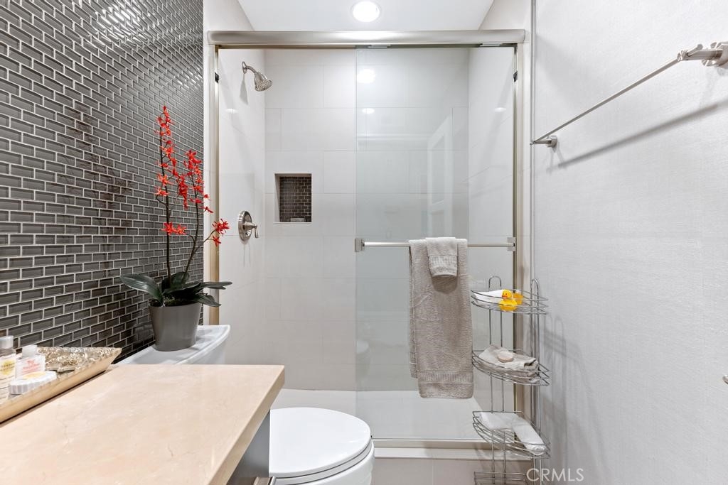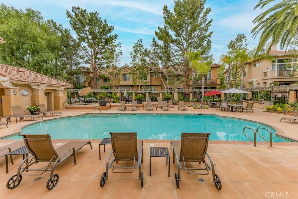 One of a kind upgraded condo in the exclusive community of Cantada, where you are surrounded by multi-million-dollar homes and estates. The is the much sought-after Castanet model, where conveniently most everything is on one level. Kitchen is upgraded in white cabinets, granite counter tops and a luxurious metallic finish mosaic tile back splash. The kitchen includes all stainless-steel luxury appliances including a built-in wine cooler. The kitchen also has a convenient breakfast bar, with makes for easy informal meals or add more seating on a larger gathering, as it faces towards the formal dining room, so no-one is left out of the party. The windows are dressed to impress with planation shutters or silhouette blinds. The upgraded millwork is second to none with grand crown molding, 6” base molding and an exquisite casement molding around windows and doors. The interior doors are truly unique 3 lite French doors with frosted glass, which allow for privacy, but still let all the light come through. The all the door hardware has a luxurious brushed finish. The living and dining room has soaring ceilings which adds an inviting light and airy feeling. The living room has a fireplace and an ingenious built in entertaining system cabinet with frosted glass. The master suite is fit for a queen, with a designer accent wall and TV in the bed area and the master bath is equipped with an espresso finished dual sink vanity with premium granite tops, custom mirrors and mirror lights and an impressive glass tile back splash that goes all the way to the ceiling. There is even an expanding privacy divider to close off the bathroom area from the bedroom when needed. At the ground level, you have a full-sized laundry room and direct access to the garage, and a convenient generously sized storage closet. Enjoy meals alfresco, with the large balcony located right next to the dining room with wonderful views of the trees and green belt. Enjoy all the local amenities that North Tustin Ranch offers, like hiking or riding the peters Canyon Trail and head either to the Ocean or the Mountains, pioneer road park, cedar grove park or just a little further citrus ranch park, with a view pavilion of the mountains or Catalina Island.