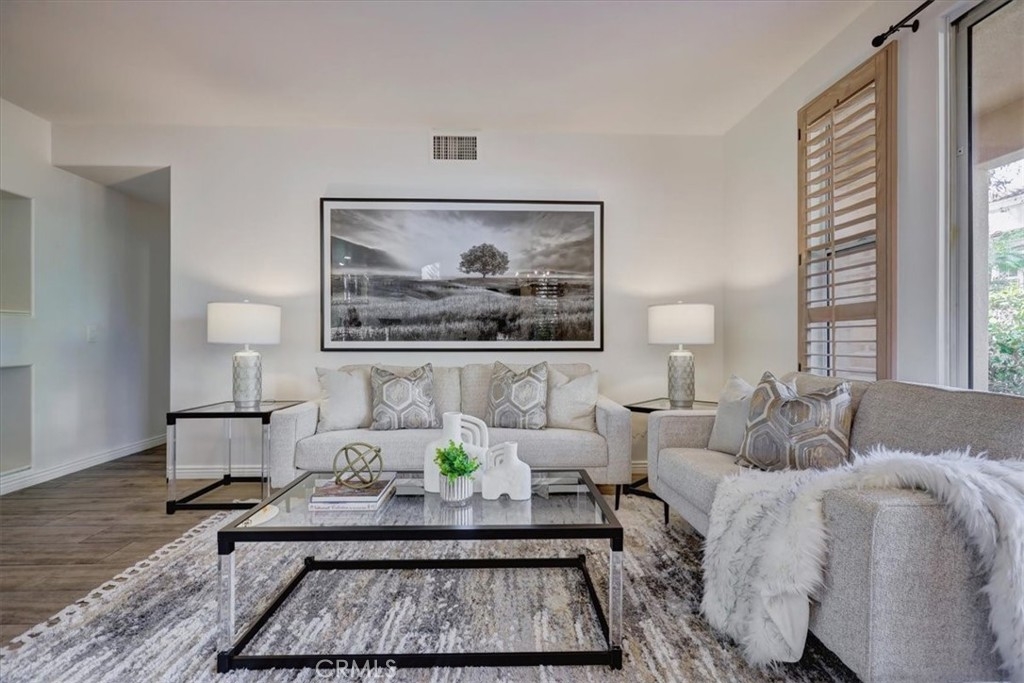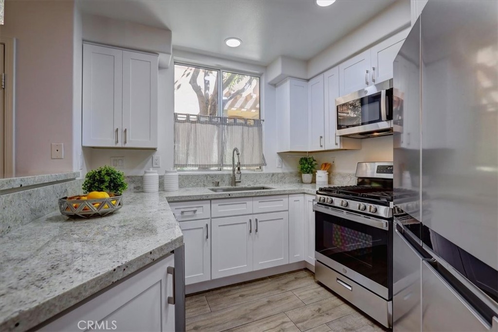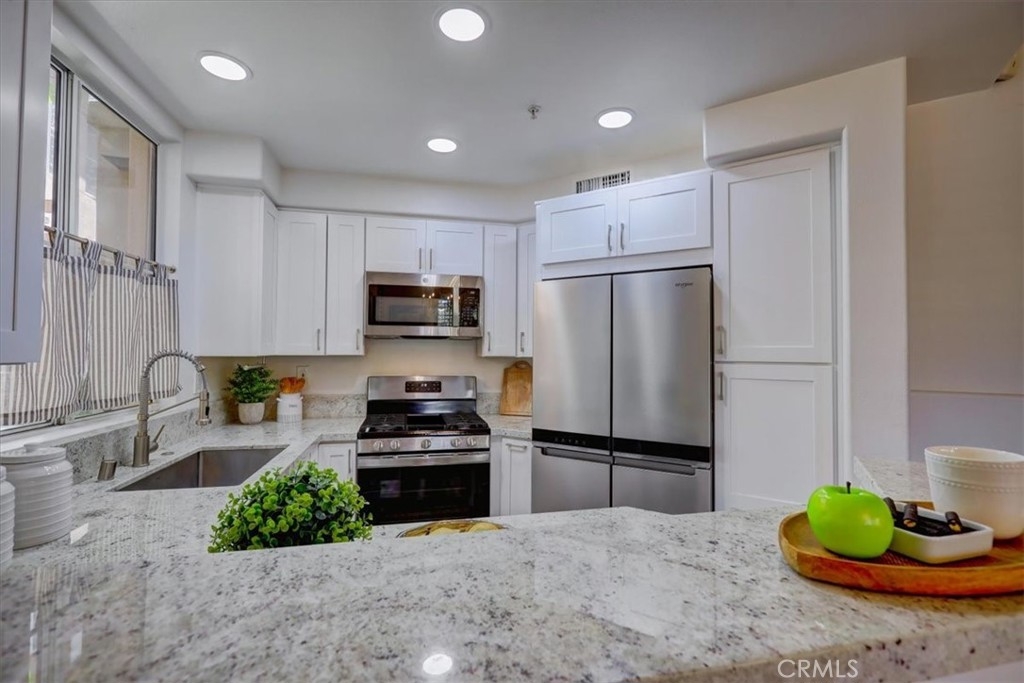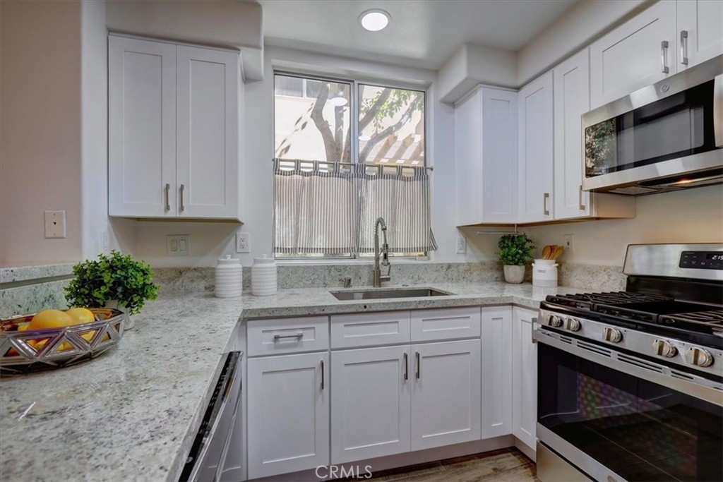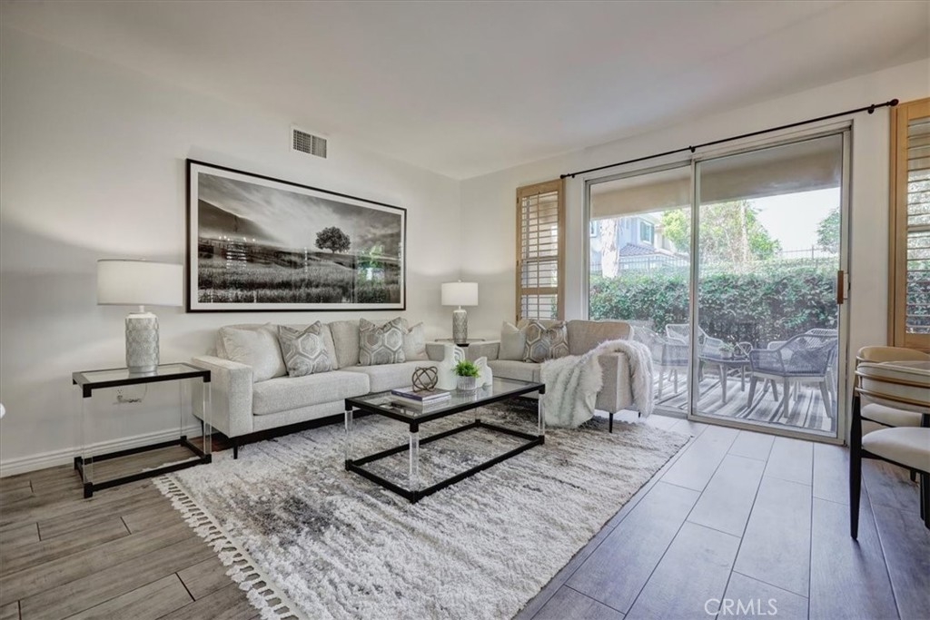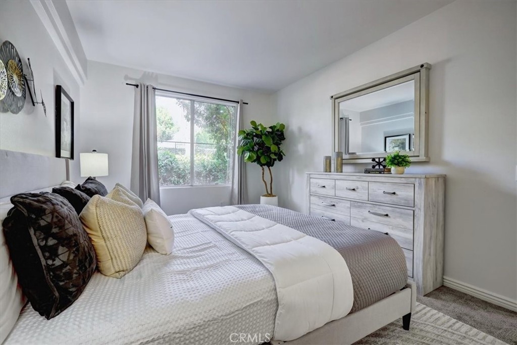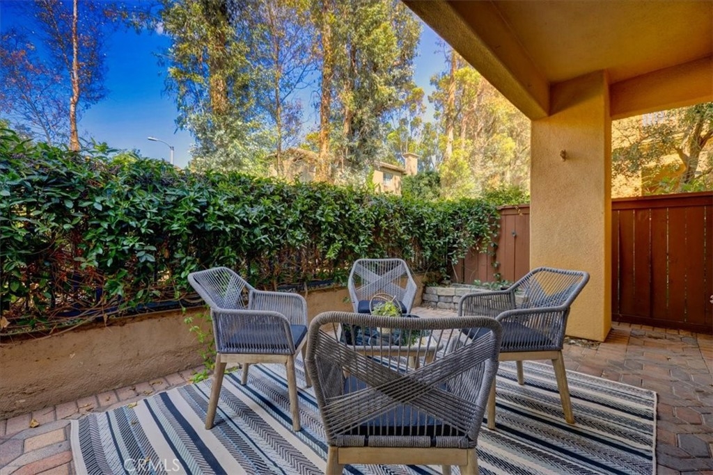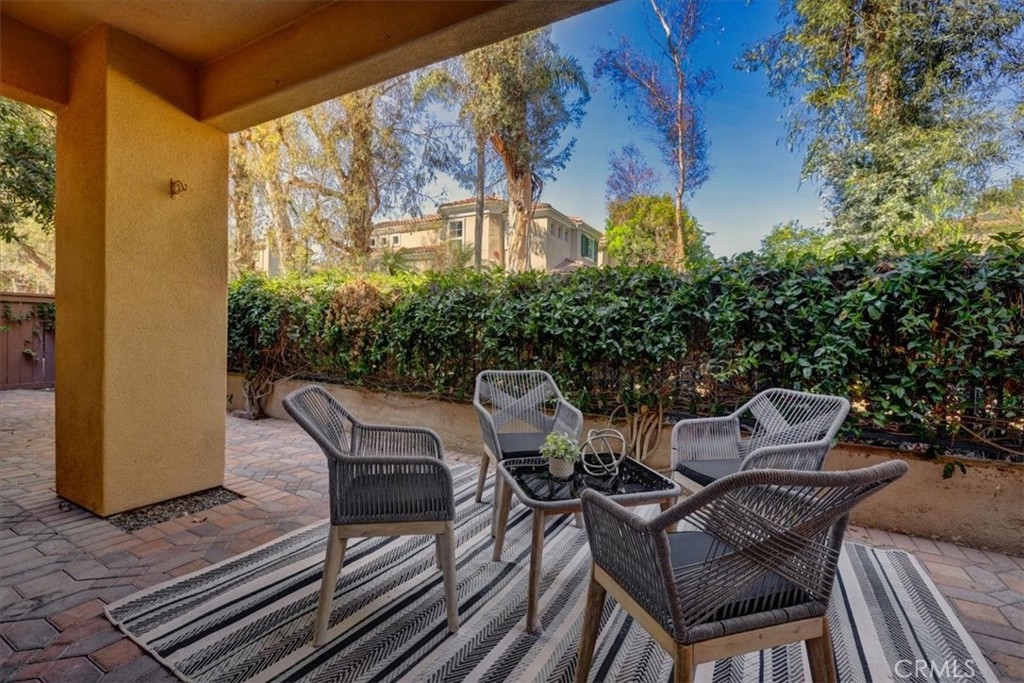 RARELY AVAILABLE single-level end unit in the sought-after Cantada community of Tustin Ranch! This highly upgraded 2-bedroom, 2-bath home offers the perfect blend of modern style and serene privacy. Backing to a lush greenbelt with no neighbors behind, the private patio is an ideal spot to relax and unwind. Inside, you’ll love the open floor plan with soaring ceilings, abundant natural light, and a cozy fireplace. The fully remodeled kitchen showcases crisp white cabinetry, granite countertops, and stainless steel appliances—perfect for both everyday living and entertaining. The spacious primary suite features a walk-in closet and spa-like soaking tub. Additional highlights include newer carpet and tile flooring, an upgraded water heater, an interior laundry room with washer and dryer, plus an attached 1-car garage and assigned carport. Cantada offers resort-style amenities including a sparkling pool, spa, and BBQ area. All this with easy access to parks, award-winning schools, shopping, dining, and major freeways.