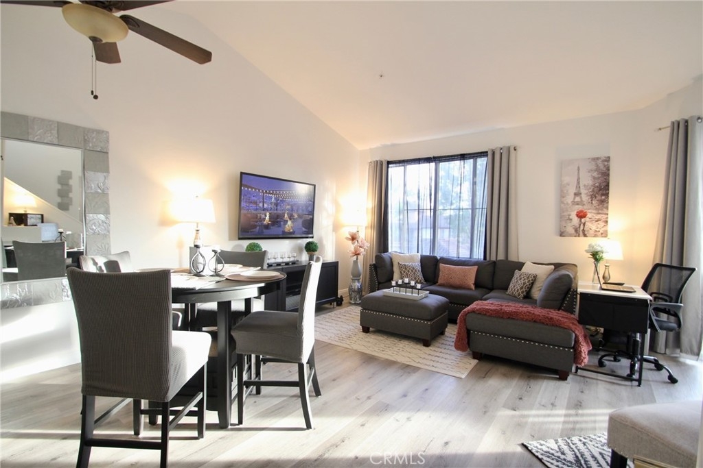 Welcome to Cantada in Tustin Ranch. This luxury condo is absolutely gorgeous and has been recently upgraded. It features an open and airy floorplan with vaulted ceilings, skylights, and plenty of windows which allow ample natural light. You'll find NEW luxury vinyl flooring throughout the kitchen, living/dining area, and master suite, NEW carpet flooring on the stairs leading up to the loft-style 2nd bedroom, NEW quartz countertops in the kitchen and master bath, NEW interior paint, NEW exterior paint, and NEW AC condenser. There's also a cozy fireplace in the living/dining area with a NEW quartz hearth and a nice balcony where you can enjoy your morning coffee or evening cocktail. The HOA amenities include a resort style pool, spa, and BBQ area. Another bonus is the property is centrally located minutes away from freeways (I-5, CA 261, & CA 241), award-winning schools (Peter Canyon Elementary & Pioneer Middle School), parks (Peter Canyon Regional Park, Cedar Park, Citrus Ranch Park, and Tustin Sports Park), Tustin Ranch Golf Club, Costco, The Market Place, and other popular shopping, dining and entertainment destinations. This is a must see!