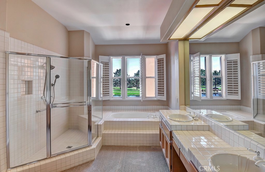 **PRICE REDUCED** Great location on the golf course. This 3 bedroom, 2 ½ bath Tustin Ranch home feels bright and airy from the moment you walk in. Located on the Tustin Ranch Golf Course's signature hole (hole 11), the patio is perfect for enjoying backyard entertaining or tranquil living. Inside, it’s high ceilings and doorways and large skylight offer lots of natural light. The home flows well from room to room with custom plantation shutters, built-in cabinetry, wood floors and new carpet throughout. Cozy up by one of the two gas fireplaces in the living and family rooms or retreat to the Master suite to enjoy views of the grassy green fairways of the golf course. The spacious master bathroom features a large shower, jacuzzi tub and double sinks. The additional bedrooms feature a Jack-and-Jill bathroom, perfect for family living, and the two-car garage is an added bonus. Association amenities include a pool, sauna, BBQ area and tennis courts. Plus, within walking distance to award-winning Tustin Ranch schools, shopping and restaurants. Homes in this sought-after community rarely hit the market -- don’t miss your opportunity!