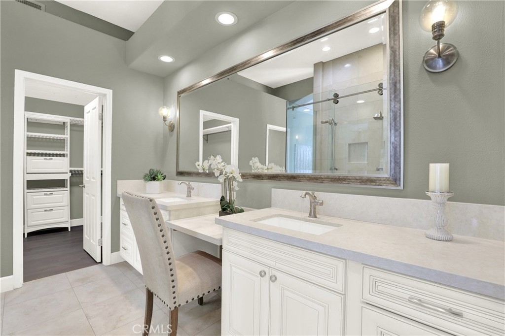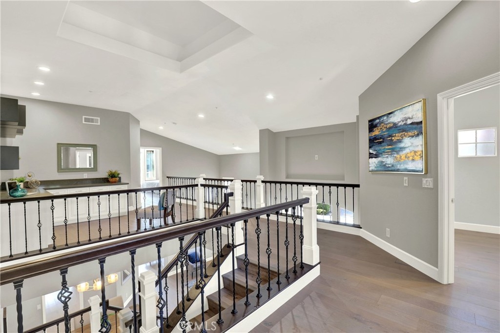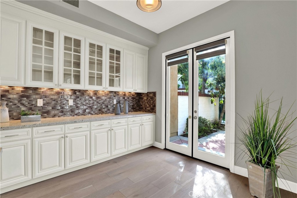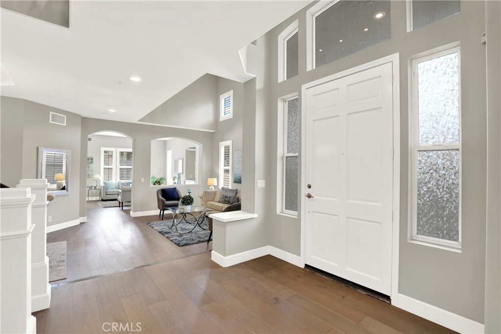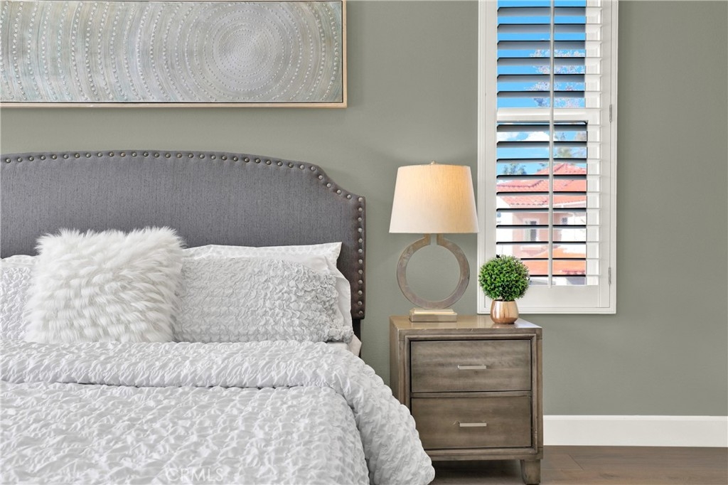 Beautiful Quiet interior end unit within the gated community of Corte Villa. This open-concept design is the largest model in the community. The residence has one bedroom and a full bathroom downstairs. Two secondary rooms a shared bathroom and the Primary Ensuite all located upstairs. All rooms are a generous size. This beautifully upgraded unit boasts natural sunlight throughout. The upgraded kitchen has stainless steel appliances, gas cooktop, quartz countertops, and plenty of storage space. The second floor has a large loft with built-in cabinets and floating shelves that can be used as an office or study area. The unit boasts a separate dining room, living room, and family room with a fireplace. The Primary ensuite has a beautiful fireplace that can be enjoyed as well as a large closet, double showerheads in the Primary bathroom and much much more. Downstairs inside laundry with sink and more storage cabinets. The gated front courtyard area provides added privacy in addition to the beautiful rear patio which is tranquil and beautifully landscaped. Two car attached garage with direct access. Nearby you have the Association amenities which include pools, tennis courts, tot lots, picnic tables and much more. You are also part of the award-winning Tustin school district. Within short distance of Tustin market place and Irvine Spectrum.