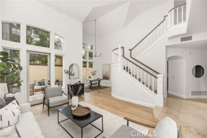 Welcome to this lovely home in the gated community of Corte Villa, right next to Tustin Ranch Golf Course. This spacious 4 Bed + loft, 3 Bath end-unit offers an open floor plan with high ceilings, recessed lighting, vinyl flooring, and plantation shutters throughout. The main floor features a remodeled kitchen with built-in stainless steel appliances, quartz countertops, backsplash, and a breakfast nook that opens to a peaceful, beautifully landscaped yard. The formal living and dining rooms are great for entertaining, while the cozy family room with a fireplace is perfect for relaxing. There’s also a spacious bedroom with a full bath on this level, plus a separate laundry room with a sink, folding counter, and plenty of storage. The direct access 2-car garage has epoxy floors and built-in cabinets. Upstairs, the luxurious master suite features a private balcony overlooking the backyard—an ideal spot to unwind or entertain. The updated, modern-style ensuite bathroom includes dual vanities, makeup vanity, walk-in shower, separate tub, and a large walk-in closet. Two spacious guest bedrooms, an upgraded guest bathroom with a walk-in shower and dual vanity, and a versatile loft that complete the second floor. Residents enjoy resort-style amenities like pools, a spa, tennis courts, and parks. The home is close to top-rated schools, Tustin Marketplace, hiking and biking trails, and offers easy access to the 5 and 55 freeways, plus the 241 and 261 toll roads. With a low property tax rate of about 1.05%, this home perfectly blends style, comfort, and convenience for Southern California living.