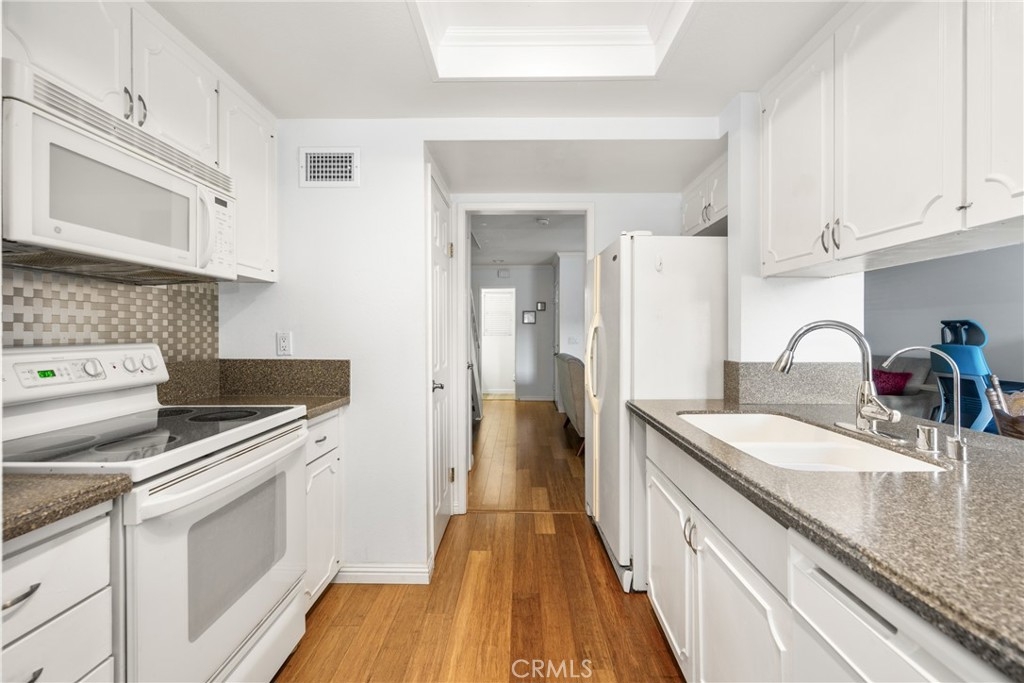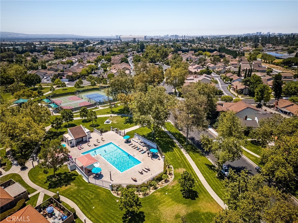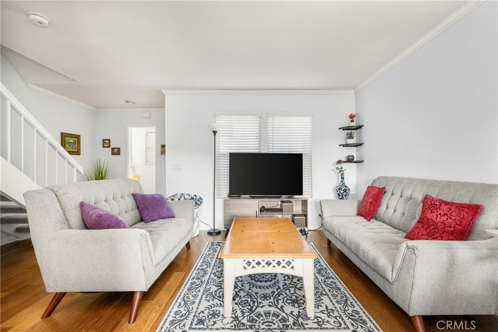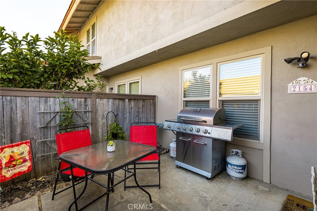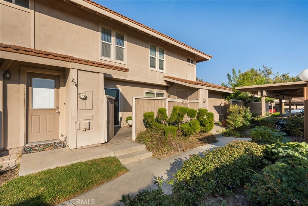 This wonderful townhome is located in the Laurelwood Community near The Market Place and The District in the beautiful city of Tustin. 2154 Foxglove has so much to offer! It starts with a front patio spacious enough to BBQ and enjoy meals outside, and as you enter the home you'll immediately feel the effect of a brand new AC system! This cozy home offers an open concept living and dining room with beautiful engineered bamboo flooring throughout the downstairs, lovely white cabinets in the kitchen with contemporary gray countertops, an electric stove, a sink with a pass through, and a second patio with a storage closet that holds the brand new water heater. The kitchen also hosts the laundry area, and the guest bath downstairs has granite countertops. You'll find brand new carpet up the stairs and in the bedrooms and one of the bedrooms has a view of the mountains. The bathroom upstairs has dual sinks, tile floors and tiled tub surround. Both bathrooms have new fixtures and mirrors. There is an additional storage closet by the 2 assigned carport spaces that are only steps away from the back door. HOA amenities include a lovely pool and wader, a tot lot, RV lot, tennis courts and sports court, as well as a large community park. Specifically outside this unit is a large grass area too. Come and get it before its too late!