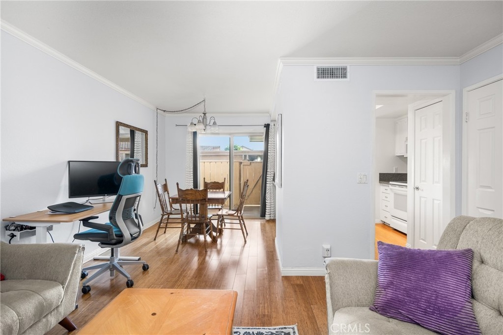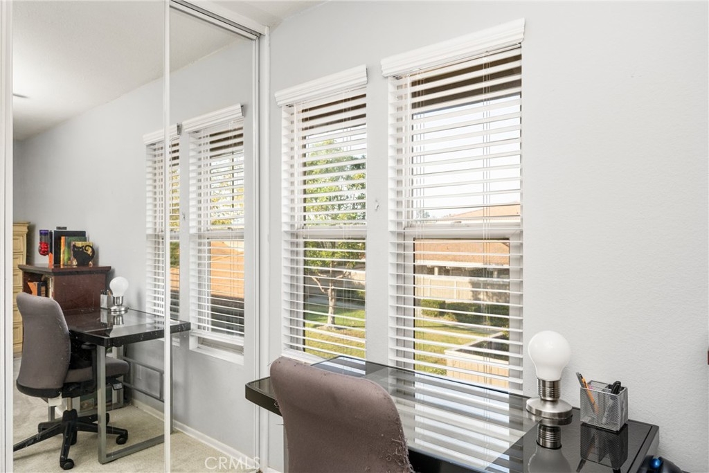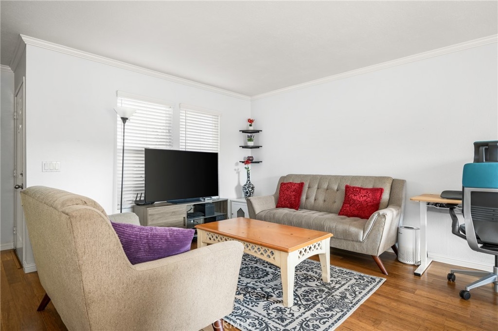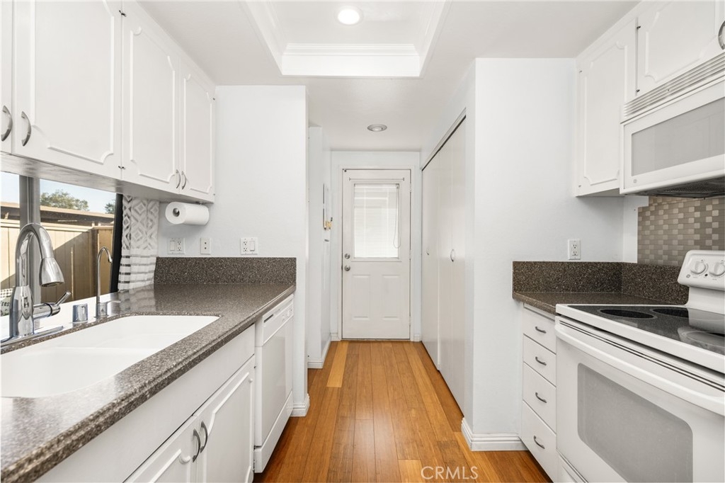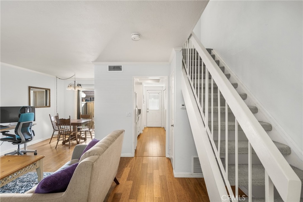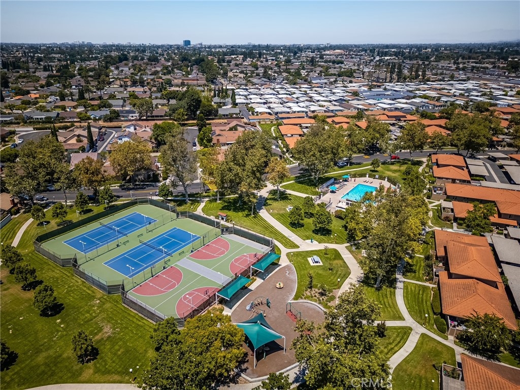 This wonderful townhome is located in the Laurelwood Community near The Market Place and The District in the beautiful city of Tustin. 2154 Foxglove has so much to offer! It starts with a front patio spacious enough to BBQ and enjoy meals outside, and as you enter the home you'll immediately feel the effect of a brand new AC system! This cozy home offers an open concept living and dining room with beautiful engineered bamboo flooring throughout the downstairs, lovely white cabinets in the kitchen with contemporary gray countertops, an electric stove, a sink with a pass through, and a second patio with a storage closet that holds the brand new water heater. The kitchen also hosts the laundry area, and the guest bath downstairs has granite countertops. You'll find brand new carpet up the stairs and in the bedrooms and one of the bedrooms has a view of the mountains. The bathroom upstairs has dual sinks, tile floors and tiled tub surround. Both bathrooms have new fixtures and mirrors. There is an additional storage closet by the 2 assigned carport spaces that are only steps away from the back door. HOA amenities include a lovely pool and wader, a tot lot, RV lot, tennis courts and sports court, as well as a large community park. Specifically outside this unit is a large grass area too. Come and get it before its too late!