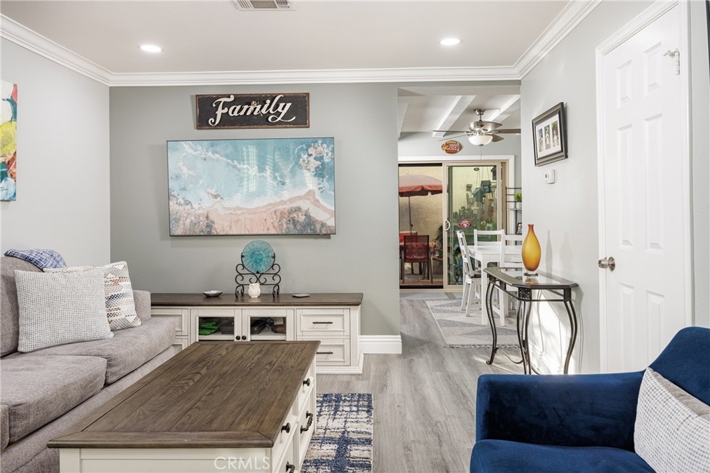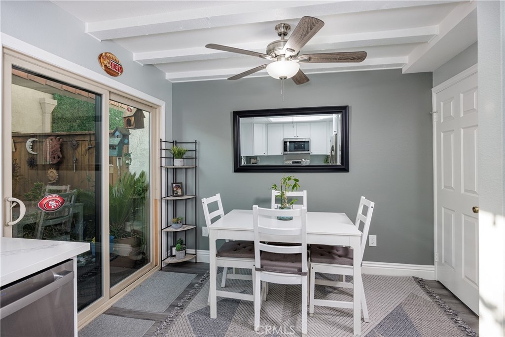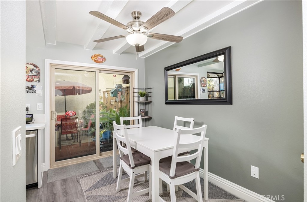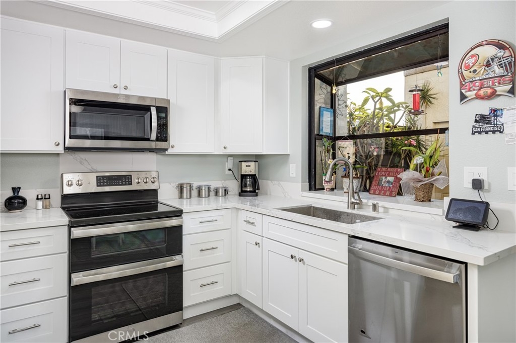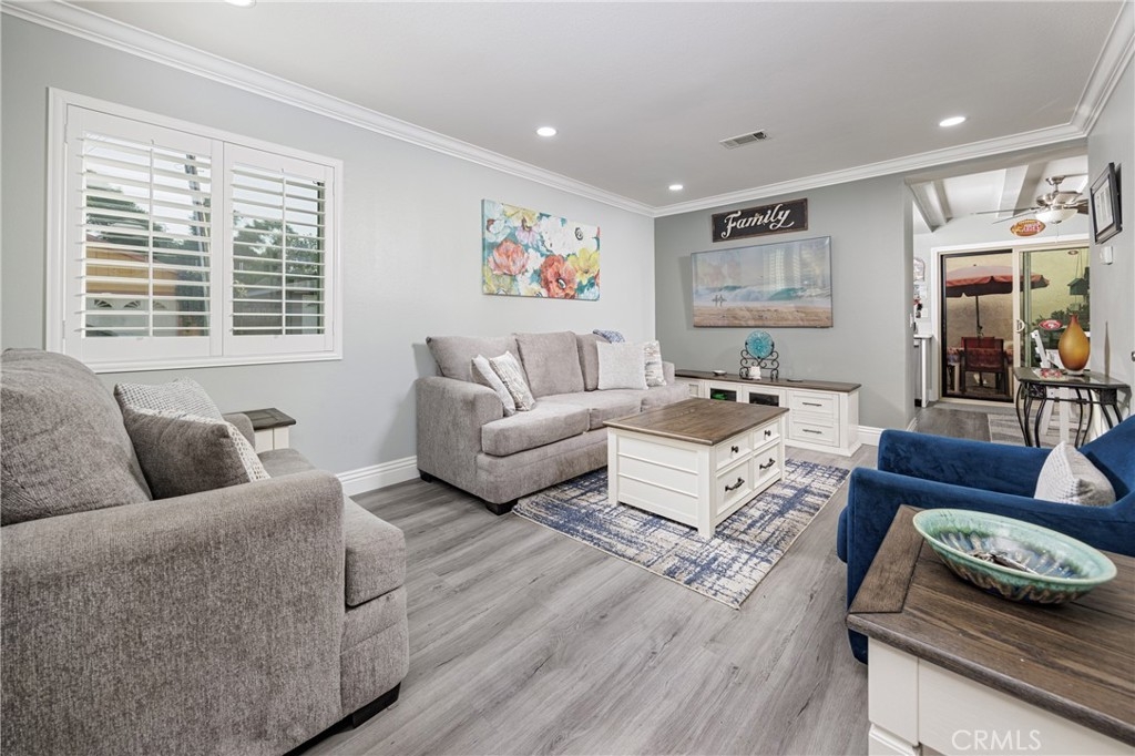 Beautifully upgraded end unit. The lower level has been recently remodeled with plush upgrades. Upgrades include a neutral color palette, vinyl flooring, LED recessed lighting, crown molding, dual-pane windows with plantation shutters, dual pane sliding glass door leading to private patio and garage access, kitchen with white shaker cabinets, soft closing drawers, stainless steel appliances and quartz countertops. Rounding out the lower level is a remodeled powder room and in-unit laundry. The upper level boasts 2 bedrooms and 1 full bathroom with dual vanities. Parking your cars is a breeze with a single-car garage and an assigned off-street parking spot. The sparking community pool and spa are a refreshment from the heat.