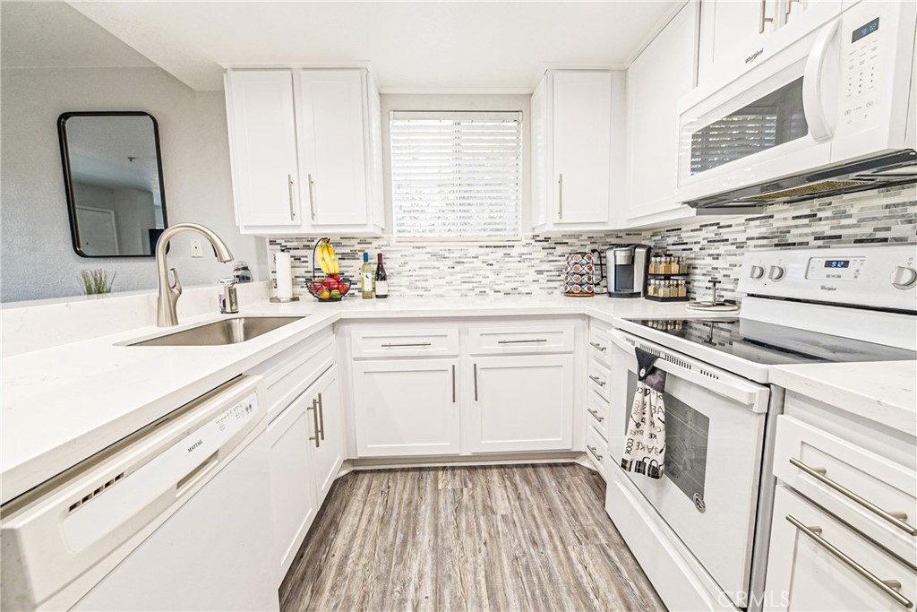 This beautiful condo is turn-key, move in ready! Upstairs unit beautifully remodeled with a modern feel. Has new paint throughout, new carpet, luxury vinyl tile and quartz countertops in kitchen and bathrooms, shaker style cabinets with a gorgeous linear mosaic marble backsplash, a hide away pull-out trash can, new faucets, soft close doors throughout, recessed lighting… and more!! Truly a must see in person. Community features two pools, two spas, a workout center, and tennis courts located conveniently across the street.
