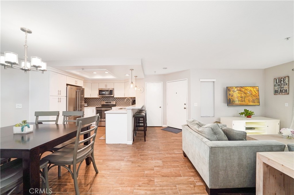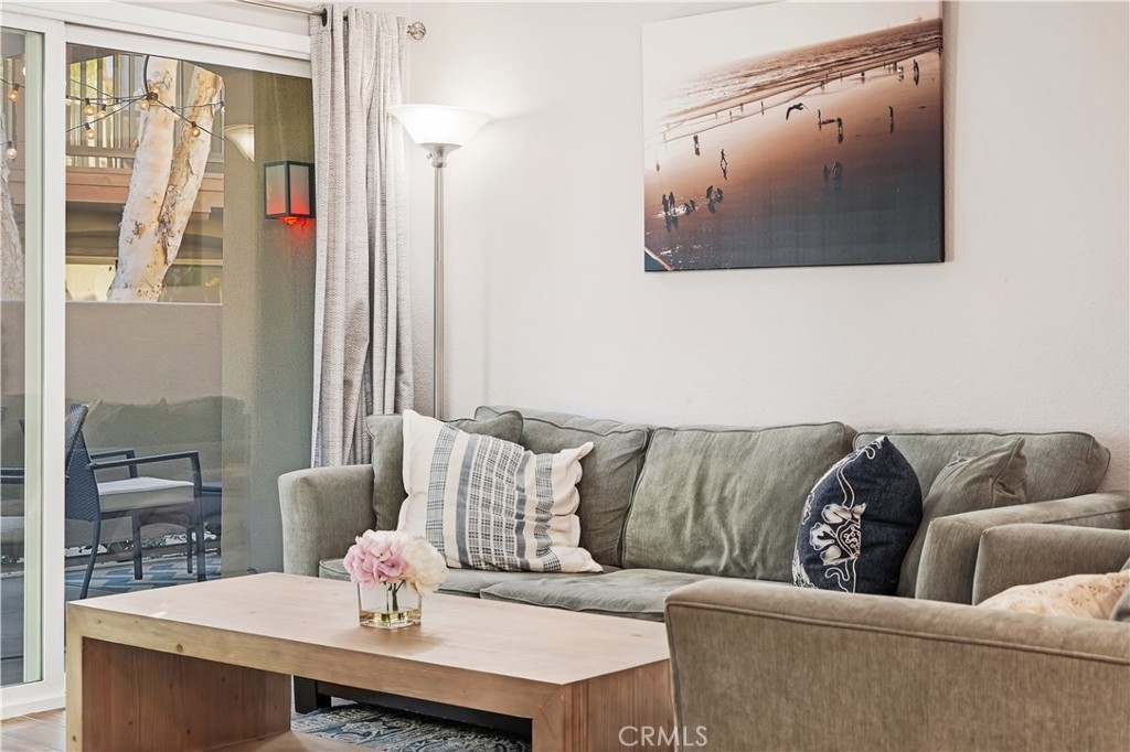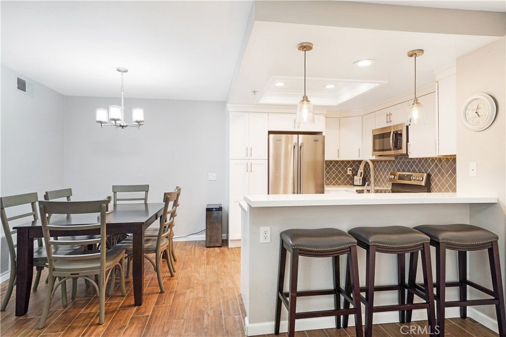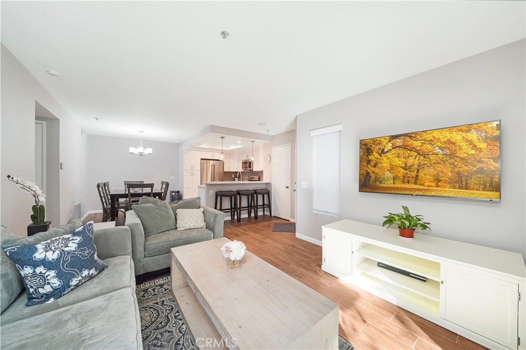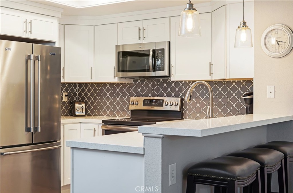 Charming 1 bedroom, 1 full bathroom, main level condo located in the highly desirable community of Mandevilla in Tustin Ranch. This main level, turn key unit features a bright and open floor plan with fresh interior paint and porcelain wood like tile throughout the entire home. The upgraded kitchen is complete with quartz countertops, custom backsplash and stainless appliances. Cozy dining room and living area. Separate washer and dryer closet inside the home. Primary bedroom with updated ensuite bathroom with new vanity, storage, shower and also has a large walk-in closet. Oversized patio and single-car detached garage with new garage roll up door. New HVAC system installed in 2018. Low monthly HOA dues. HOA amenities include clubhouse, pool, spa and playground. Close to shopping, dining, freeways, golf course and located in the Tustin Unified School District. This home is truly a must see!