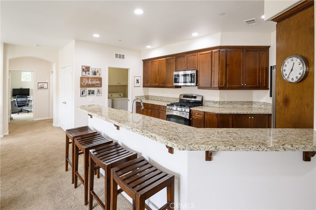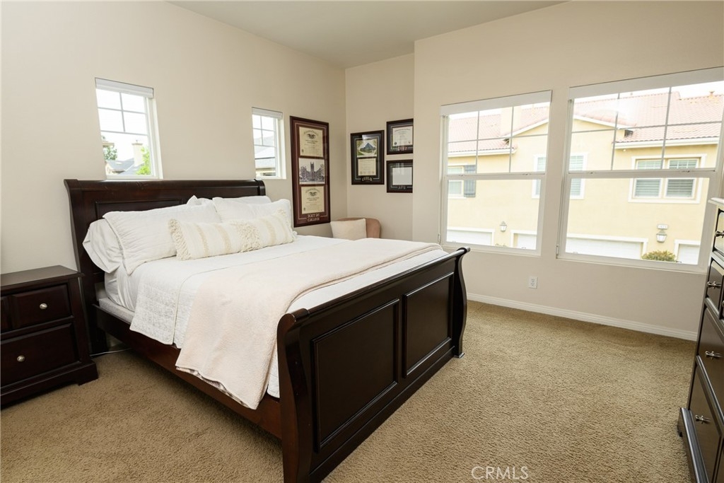 Welcome to this highly sought after Plan 1 Meriwether Carriage Unit! This beautiful 2 bedroom 2 bath home features an expansive open layout, large kitchen peninsula with gleaming granite counter tops, richly stained cabinets and stainless steel appliances. Other amenities include a walk-in pantry and a convenient inside laundry room! The floor plan is ideal with the two bedrooms on opposite sides of the home, offering privacy for all, the primary bedroom offers a large walk in closet and newly remodeled shower! This home includes a large balcony perfect for enjoying those summer nights with outdoor dining and barbecuing. Other perks to this home include a security system, recess lighting and....A DRIVEWAY! Rare to find a driveway in the newer communities in Orange County. 1417 Montgomery offers a unique location in the Columbus Square community offering an abundance of natural light yet sheltered from the hot afternoon sun. This community offers wonderful amenities such as Pool, Gym, Clubhouse, Banquet room, Parks and Playgrounds! Also the HOA host many events throughout the year such as casino nights, coffee bars and holiday events for the neighborhood. Excellent local schools such as Heritage Elementary & Tustin Legacy Magnet Academy! This a rare find as many homes do not go up for sale in this neighborhood! Priced to sell this wont last long!