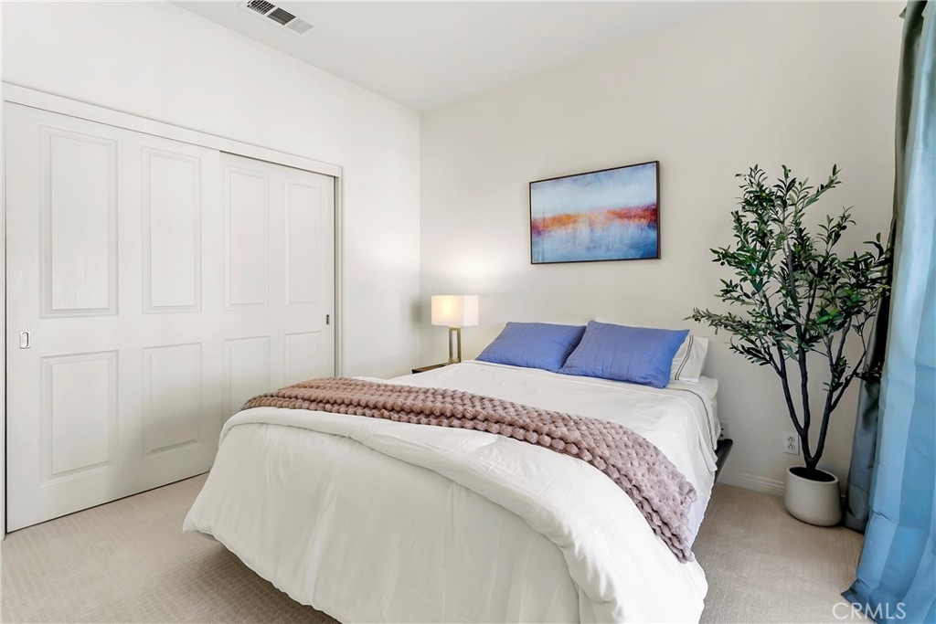Welcome to 1427 Montgomery, a highly sought-after upper unit that functions as a single story in the vibrant Meriwether community within Columbus Square in one of Tustin's prime spots! Flooded with natural light, this pristine 1,321 square foot 2 bedroom, 2 bath home features vaulted ceilings, a cozy family-room fireplace, recessed lighting, ceiling fans and beautiful laminate wood flooring—along with fresh interior paint and brand-new carpet in the bedrooms for a clean, move-in-ready feel. Enjoy an open, airy floor plan centered around the elegant gourmet kitchen, complete with stainless steel appliances, granite countertops, breakfast bar seating, ample storage and a spacious walk-in pantry. The adjoining family room flows effortlessly to a large private balcony—perfect for relaxing or entertaining. The primary suite offers a peaceful retreat with a large walk-in closet and dual modern vanities, while the updated hallway bath features a sleek, contemporary design. Additional highlights include a 2-car garage with interior access. This exceptional home is ideally located minutes from everything you can think of, including The Market Place, Diamond Jamboree Shopping Center, Irvine Spectrum, 2 Costcos nearby, Tustin Ranch Golf Course, UCI, award-winning schools, a short walk to Veteran’s Sports Park with tennis, pickleball, and basketball and the Village at Tustin Legacy. The resort-style HOA amenities include a sparkling pool, spa, BBQ area, access to 5 parks, a fitness room and clubhouse—what an incredible place to live, work and play. Don’t miss this opportunity to own one of Columbus Square’s most desirable homes!