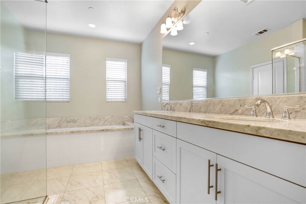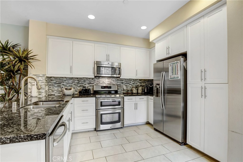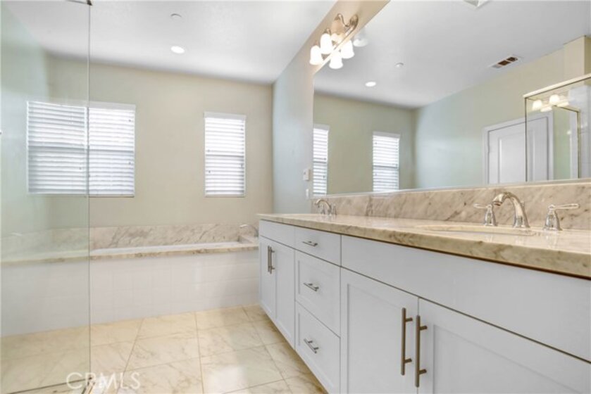 Welcome to this beautiful home in Columbus Square in Tustin Legacy. Located just off Jamboree, this rarely available end unit home boasts over 2,100 sqft with four bedrooms and three full baths and a loft upstairs. Downstairs offers you one bedroom and a full bath. Upgrades include white shaker cabinets in the kitchen with pull out pantry drawers, granite countertops, glass backsplash, and stainless-steel appliances. Other upgrades also include high-end white vanities in the bathrooms along with Carrera Marble and quartz countertops. The master bedroom is bright and airy and includes a huge master bath with upgraded Carrera Marble finishes and a walk-in closet. Down the hall from the master suite are two additional bedrooms with a jack & jill bathroom and upstairs laundry room. Amenities include a private Georgian-style clubhouse for community activities, saline pool, wading pool, spa, Wi-fi hot spots, half-court basketball courts, open play areas, and tot lots, barbecue and picnic areas.