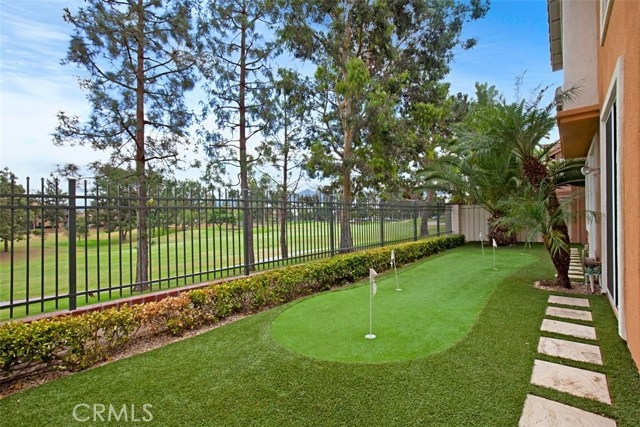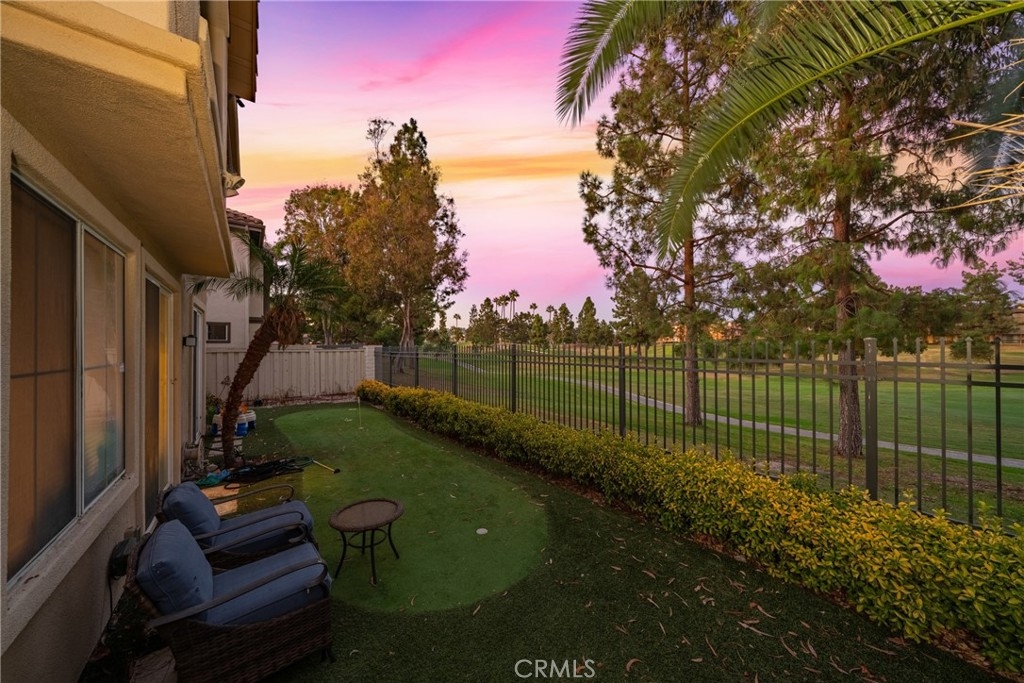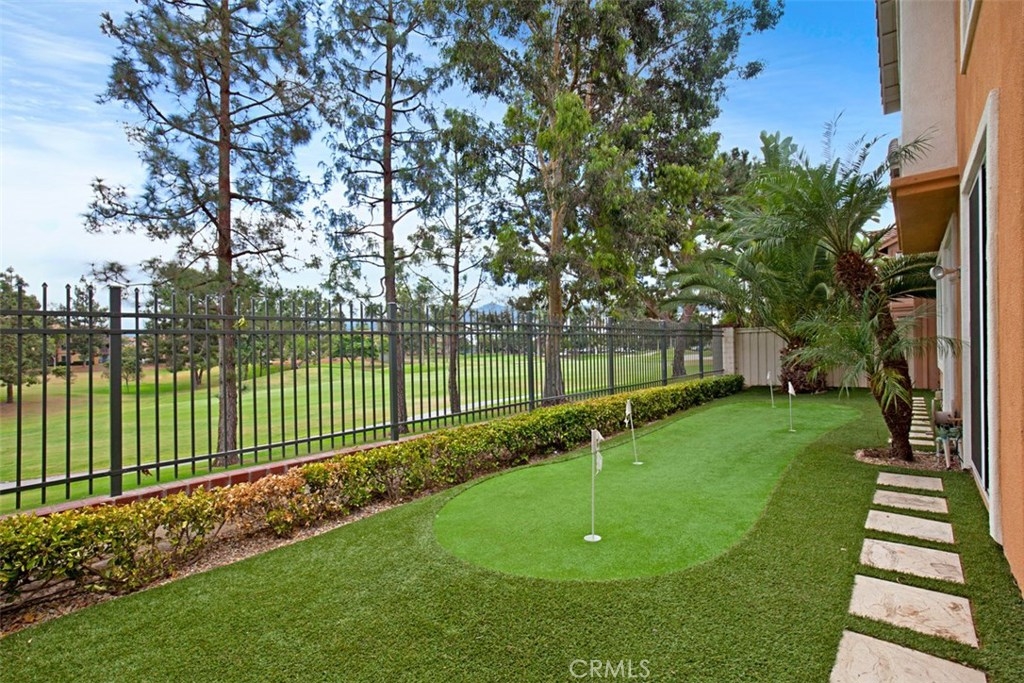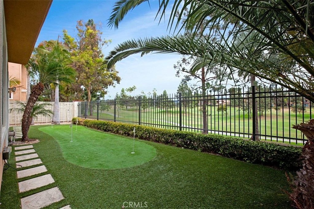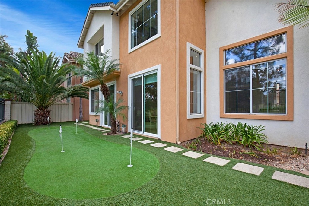 *Rarely Available Golf Course View Home in Prestigious Tustin Ranch Miramonte. This exceptional Plan 5 home is situated in the highly desirable gated golf community of Miramonte, offering a rare open double fairway view of the 5th and 6th holes on Tustin Ranch Golf Course. Step inside to be greeted by a soaring two-story entry and abundant natural light, creating a bright, airy, and inviting atmosphere. The formal living and dining rooms both feature high ceilings and large windows/doors framing the spectacular golf course views. The spacious kitchen boasts a large center island and opens to the family room with a cozy fireplace — perfect for gatherings. This sought-after Plan 5 layout includes a main-floor bedroom with a bath with shower, ideal for guests or multi-generational living, and is the only floor plan in Miramonte with an interior laundry room. Upstairs you’ll find three additional bedrooms, including a generous primary suite with high ceilings, panoramic golf course views, a large walk-in closet, and an updated bath with a new tub and shower. The tranquil backyard features low-maintenance synthetic turf, a golf putting green, and no neighbors behind — just endless views. The attached two-car garage is complemented by an extra-long full driveway that can accommodate up to six cars. Perfectly tucked away in a quiet interior location, yet just a short walk to the sports park with six lighted tennis courts. Enjoy unmatched convenience with nearby shopping centers, supermarkets, banks, theaters, restaurants, gyms, and quick access to the 5 Freeway and 261 Toll Road. Zoned to award-winning schools: Tustin Ranch Elementary, Pioneer Middle, and Beckman High — rated 8, 8, and 10 respectively. *Opportunities for this popular floor plan rarely come on the market — don’t miss it! Highly recommended!