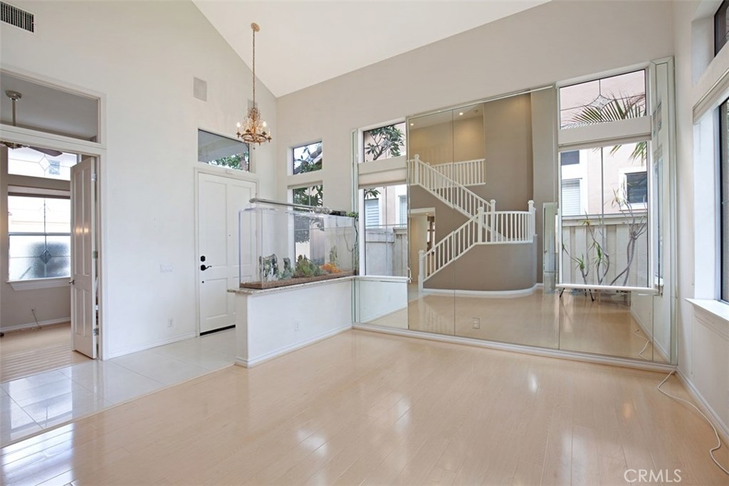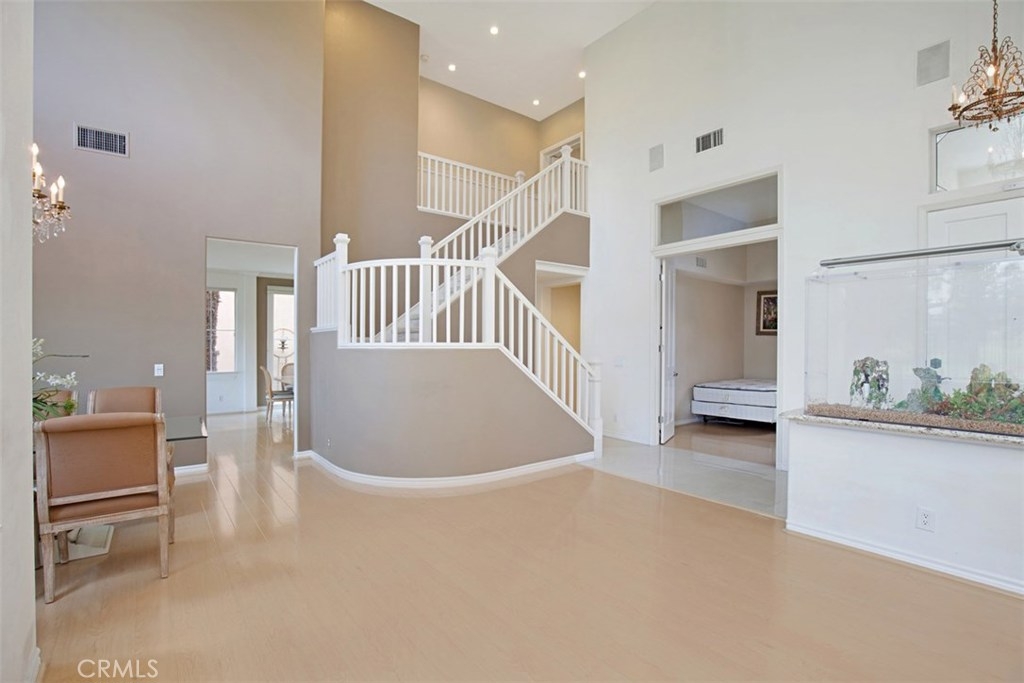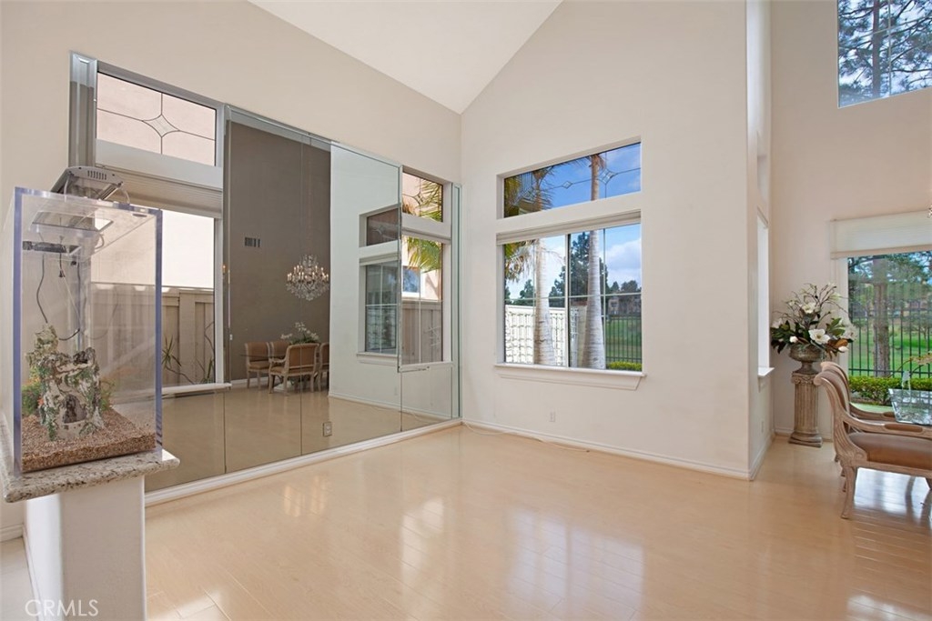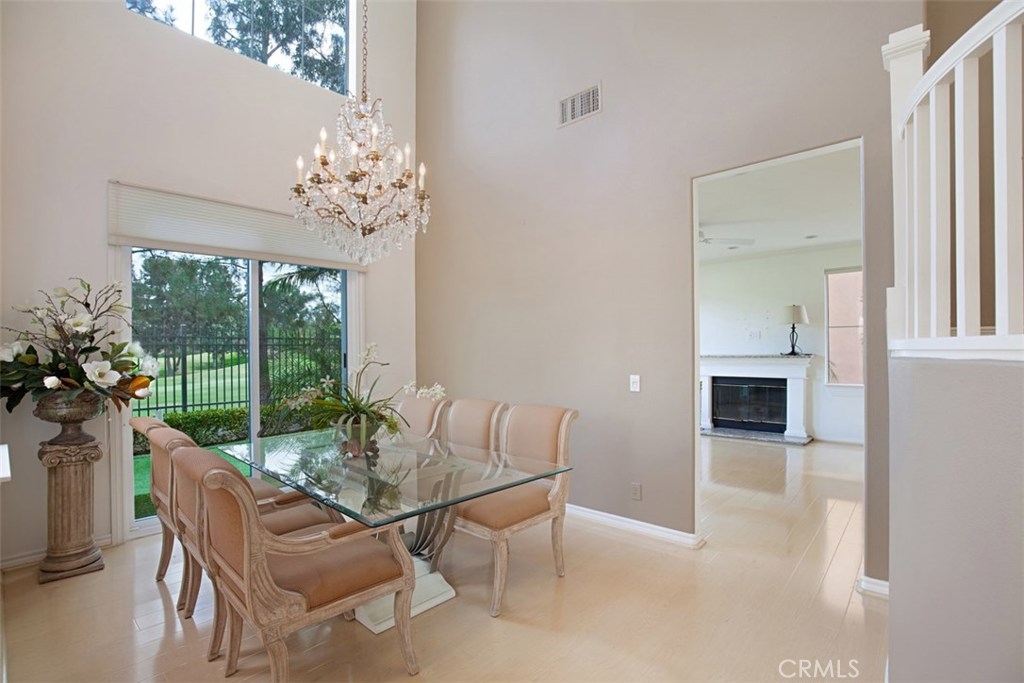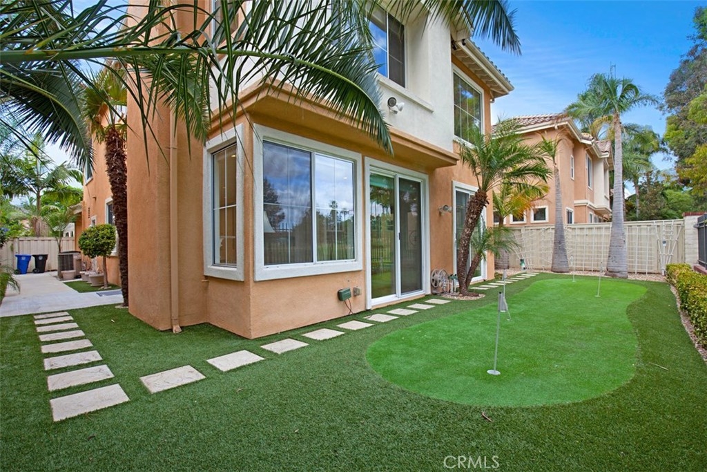*Rarely Available Golf Course View Home in Prestigious Tustin Ranch Miramonte. This exceptional Plan 5 home is situated in the highly desirable gated golf community of Miramonte, offering a rare open double fairway view of the 5th and 6th holes on Tustin Ranch Golf Course. Step inside to be greeted by a soaring two-story entry and abundant natural light, creating a bright, airy, and inviting atmosphere. The formal living and dining rooms both feature high ceilings and large windows/doors framing the spectacular golf course views. The spacious kitchen boasts a large center island and opens to the family room with a cozy fireplace — perfect for gatherings. This sought-after Plan 5 layout includes a main-floor bedroom with a bath with shower, ideal for guests or multi-generational living, and is the only floor plan in Miramonte with an interior laundry room. Upstairs you’ll find three additional bedrooms, including a generous primary suite with high ceilings, panoramic golf course views, a large walk-in closet, and an updated bath with a new tub and shower. The tranquil backyard features low-maintenance synthetic turf, a golf putting green, and no neighbors behind — just endless views. The attached two-car garage is complemented by an extra-long full driveway that can accommodate up to six cars. Perfectly tucked away in a quiet interior location, yet just a short walk to the sports park with six lighted tennis courts. Enjoy unmatched convenience with nearby shopping centers, supermarkets, banks, theaters, restaurants, gyms, and quick access to the 5 Freeway and 261 Toll Road. Zoned to award-winning schools: Tustin Ranch Elementary, Pioneer Middle, and Beckman High — rated 8, 8, and 10 respectively. *Opportunities for this popular floor plan rarely come on the market — don’t miss it! Highly recommended!