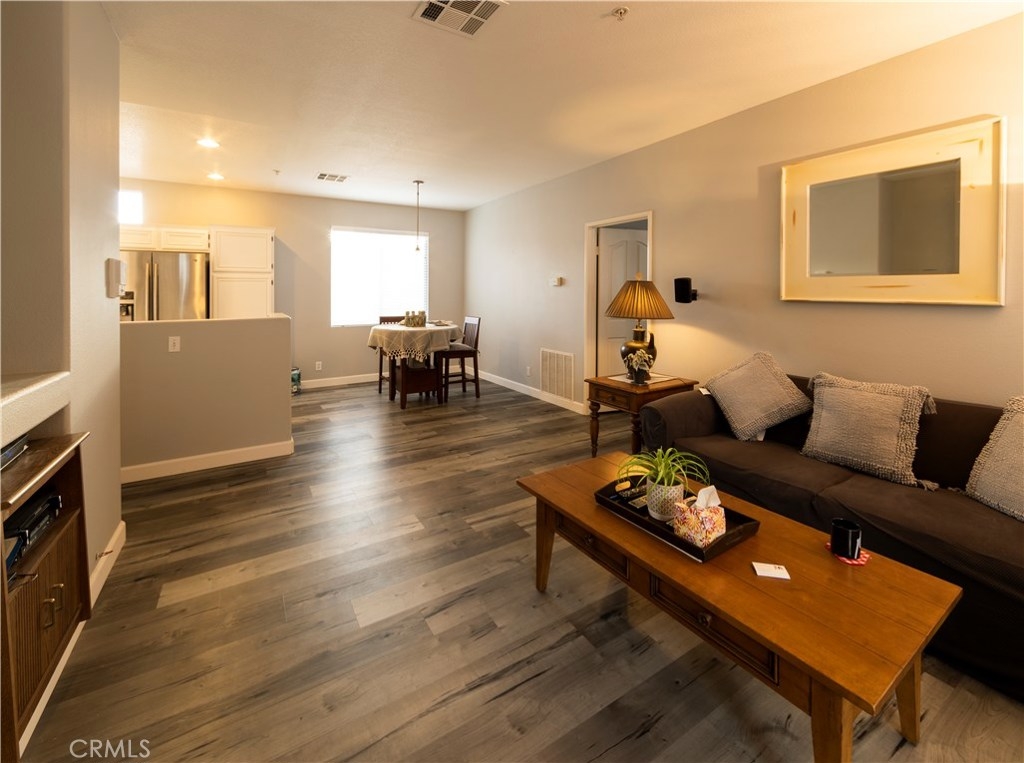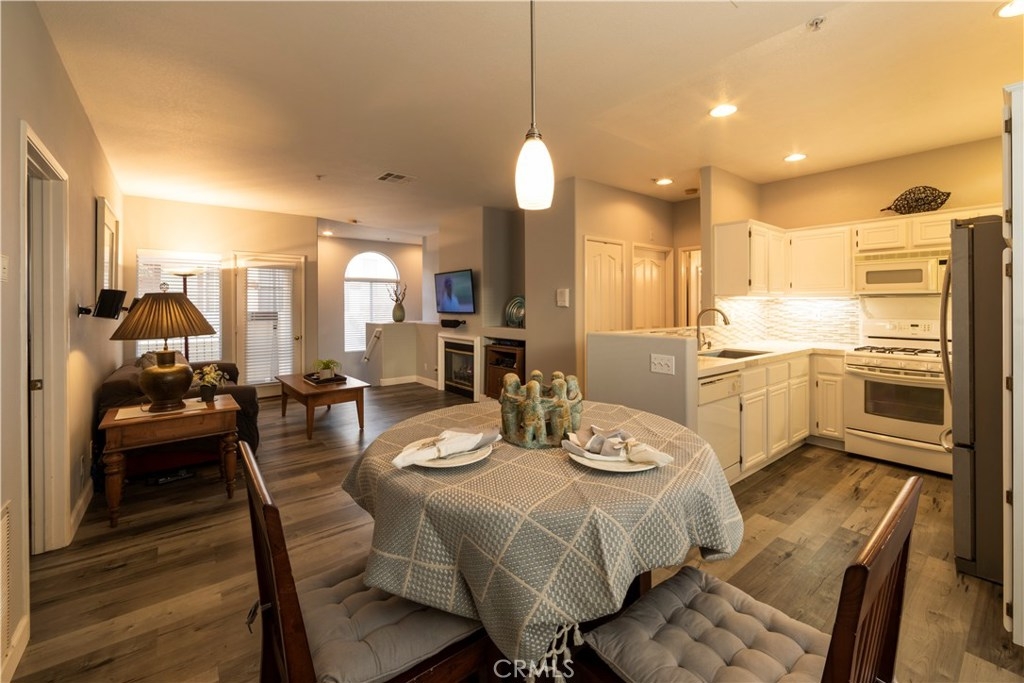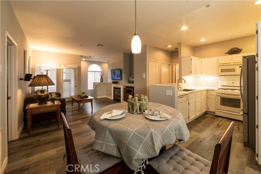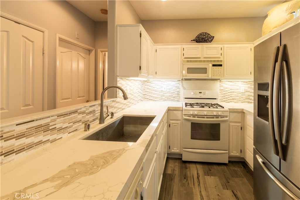 Simply Stunning at The Orchards! This home has 20k in recent remodel and is priced 10k below market, come buy it. Built by Laing builders this sought-after Pebble Beach Model (A) home of Approximately 1,168 Sq. Ft. has Modern touches everywhere from the designer LVT flooring to remodeled kitchen, designer paint and new base moldings. The gourmet kitchen comes with (4) Recessed LED Can Lighting, Stainless Steel appliances, Gas Range and Under Cabinet Lighting, deep rectangular stainless-steel sink, Kohler Kitchen touchless faucet, high end Quartz counters and custom back splash in natural stone and marble. This Pebble Beach floorplan is all on one level with a magnificent open design that allows flow from the dining area, living room and kitchen. Master Bedroom includes Walk-In closet with shelf and poles, TV Outlet, new custom paint on all walls, and brand-new window blind. Bedroom 2 has a brand-new high-quality window blind as well. Throughout you will find new water proof LVT flooring, new paint, base boards and blinds. Come and experience this beautiful bright unit with nobody above or below and live beautifully in a resort style living which includes community pool and spa. Added to the cart are magnificent award winning schools like Beckman High, Pioneer Middle School and Ladera Elementary. When life is short, why not live it beautifully? Buy this wonderful home today.