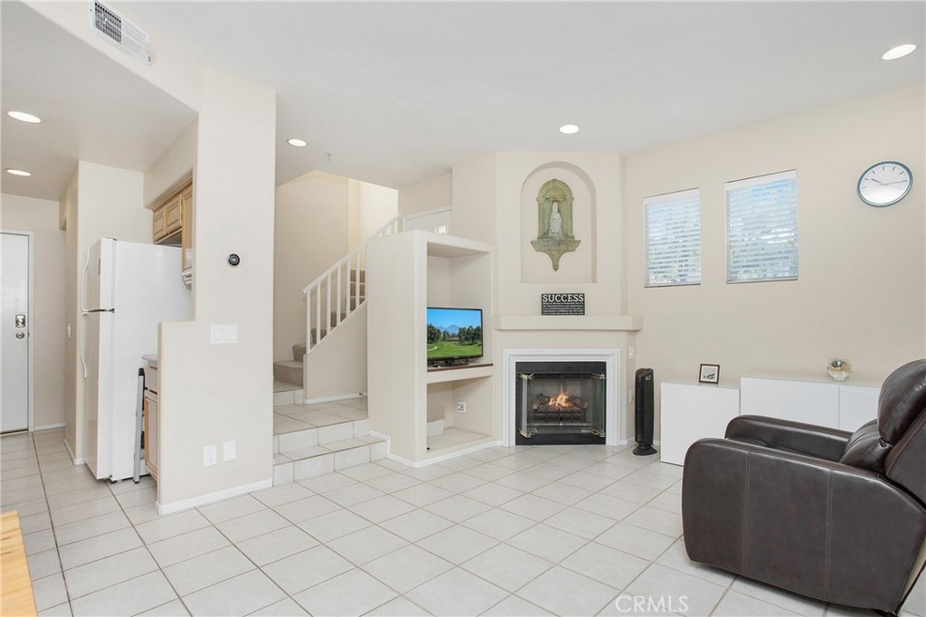 Location, location, location. Two story end unit home with no one above or below. 2 car attached garage on the main level. Both bedrooms have bathroom inside. The main bedroom has dual sink and bathtub/shower combo. The second bedroom has bathtub/shower combo. Newer style exhaust fans in the bathrooms, installed less than a couple years ago. Living room has fireplace and mini fountain attached on the wall. Backyard patio provides space to have backyard BBQ or basking under the sun to read your favorite books. Second bedroom upstairs has front patio. Fire sprinkler in the unit. Storage under the stairs. Located in highly desirable Tustin Ranch golf club. Well maintained green areas and community amenities include swimming pool, tennis courts, spa, and playground. Located within the top-rated Tustin Unified School District and just minutes from dining, shopping and entertainment at the Tustin Marketplace.