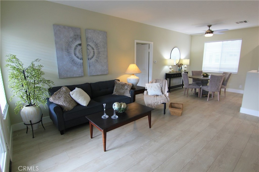 Located in the highly desirable Orchards community. This turnkey 2 bedroom, 2 bathroom condo has brand new luxury vinyl plank flooring throughout and boasts a bright and open floor plan, with plenty of natural light. The gourmet kitchen features brand new stainless steel appliances, including new refrigerator/freezer, and range. Sleek black granite countertops, under counter lighting, new door and drawer hardware, and ample storage. New paint throughout and ceiling fans in the dining and master bedroom for cool comfort year-round. The primary bedroom offers a roomy walk-in closet and an en-suite bathroom with dual vanity sinks w/ new faucets. The second bedroom is great for a bedroom or a home office with full bath right next to the bedroom. The direct access 2 car garage is so convenient, and features the laundry area, and plenty of storage cabinets! This community is nicely laid out with less parking congestion than most communities in the area, making for easier guest parking. Enjoy the community's fantastic amenities, including a pool, spa, tennis court, and playground, all set within beautifully maintained green spaces. This home is conveniently located near the Marketplace, The District, with award winning schools and transportation just minutes away. Families will appreciate the proximity to top-rated schools. Comfort and convenience await in this highly sought-after neighborhood. Best of all, LOW HOA dues and NO MELLO ROOS taxes! Brand new fiberoptic internet available in May.