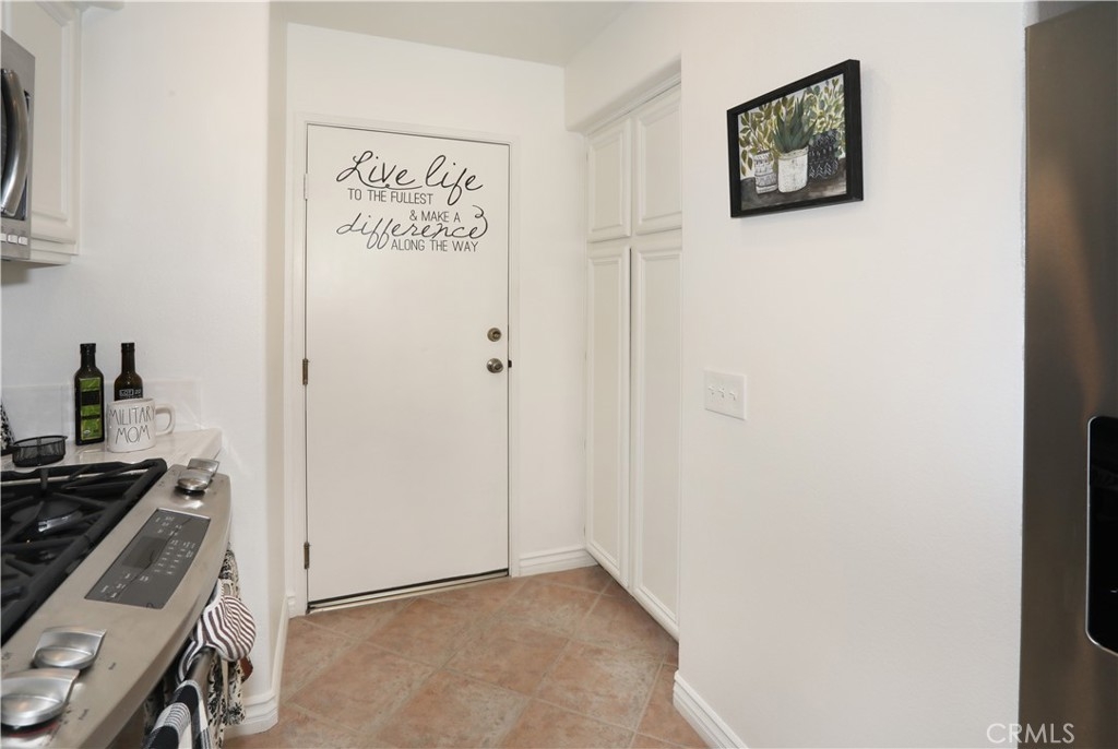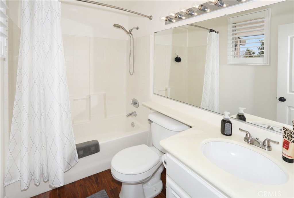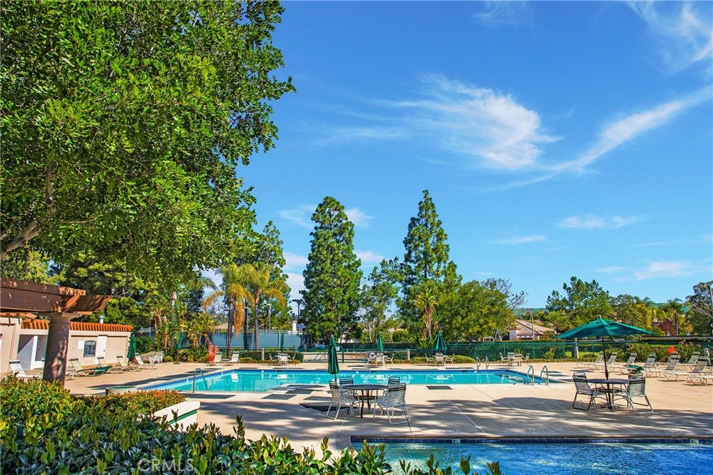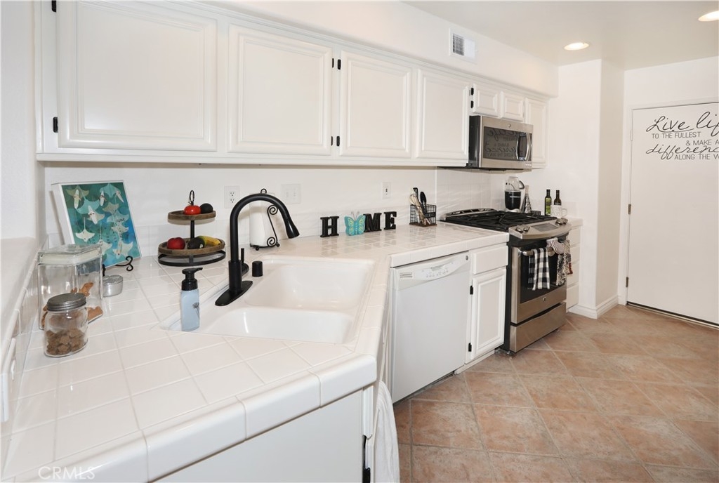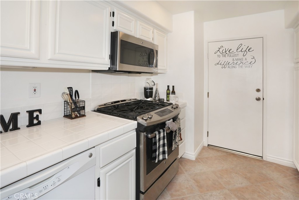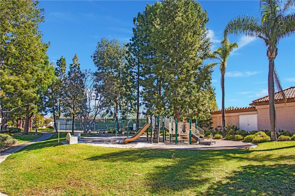 Rarely on the market, END UNIT in GOLF community of The ORCHARDS. This light and bright Modern Farmhouse Style 2 BEDROOM and 2.5 BATH, 2 story CONDO. Each bedroom has own private bathroom! Freshly painted SIMPLY WHITE with wood flooring, upgraded black fixtures, stainless appliances in kitchen including newer REFRIGERATOR, WASHER and DRYER upstairs included, 2 baths remodeled, half bath downstairs, ceiling fans, NEW WINDOWS w/PLANTATION SHUTTERS, NEW WATER HEATER, NEW AC, charming FRENCH DOORS with retractable screen leading to relaxing patio great for morning coffee or glass of wine at the end of a long day. Cozy FIREPLACE in living room with TV mounted above also included. Just steps away from Tustin Ranch Golf Course. You will appreciate the ATTACHED TWO CAR GARAGE with storage racks included. Easy access garage right on the end. HOA amenities include Pool, Spa, BBQ, Tot Lot, Tennis/Pickleball. Conveniently located to Market Place and District Shopping, Restaurants, Parks, Excellent Schools, Peters Canyon Hiking Trails. Low Mello Roos $541 per year and low HOA $280 per month.
