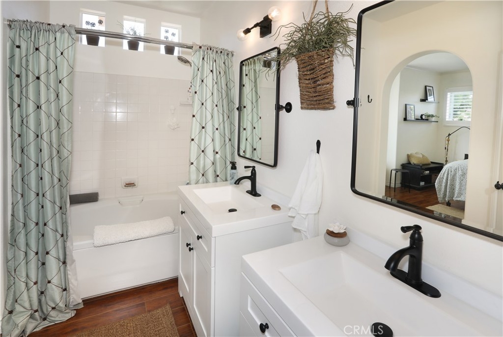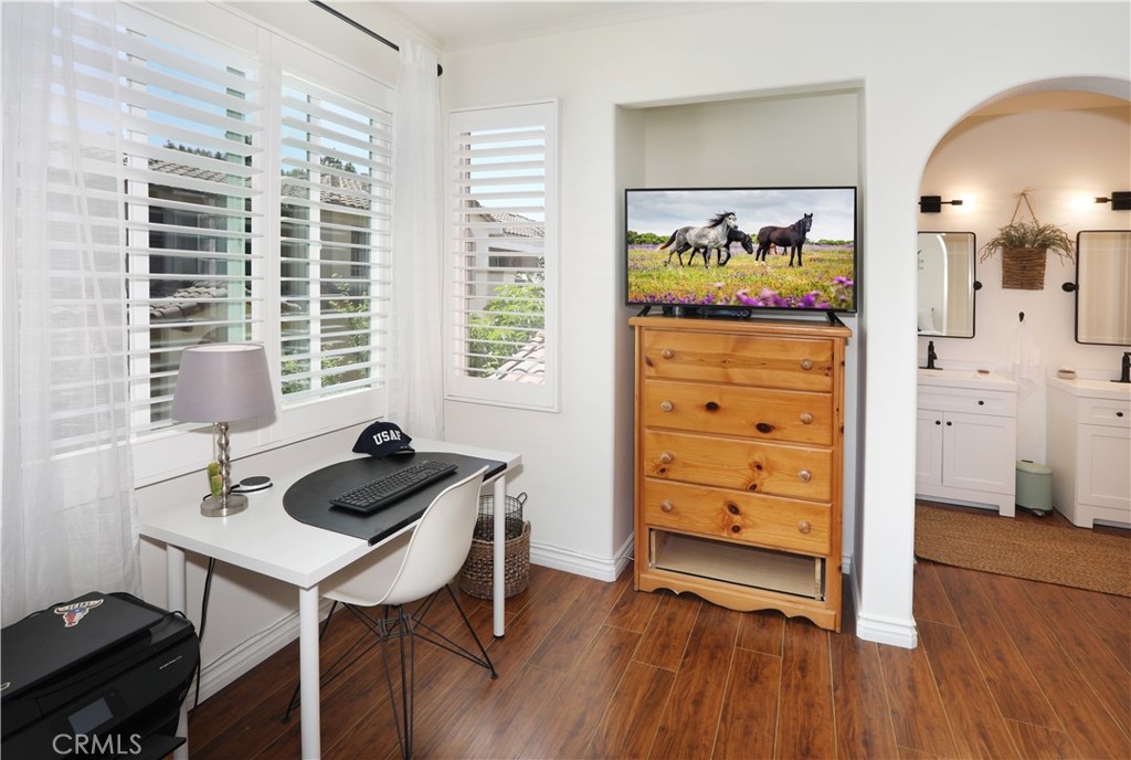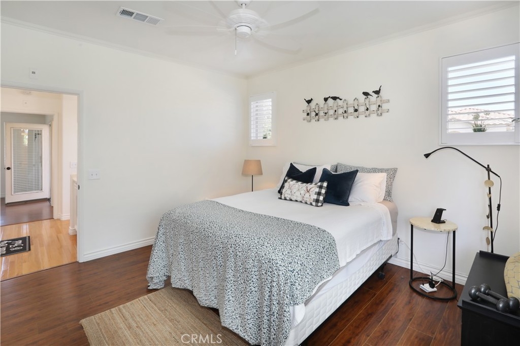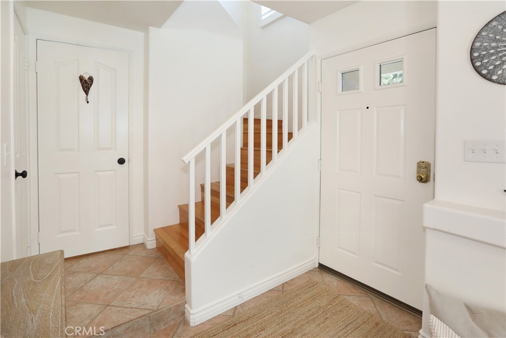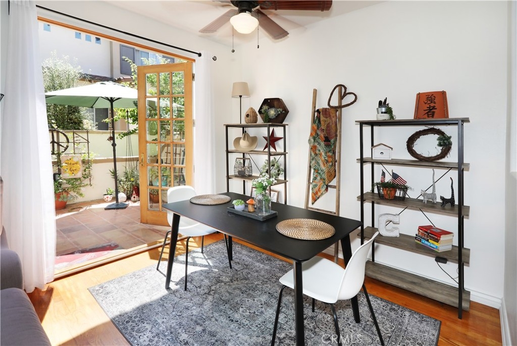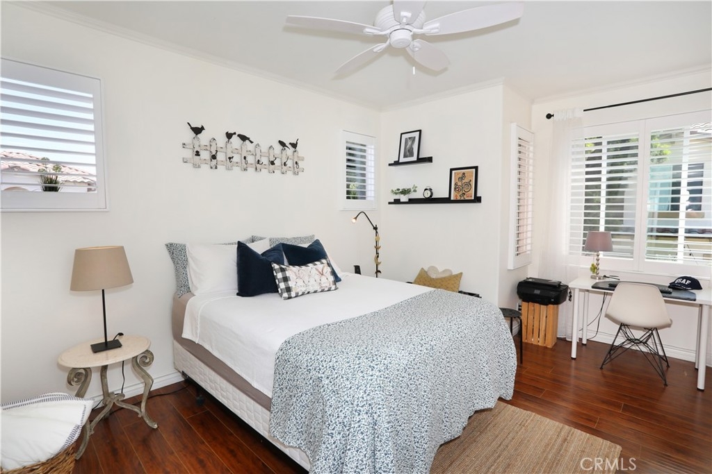 Rarely on the market, END UNIT in GOLF community of The ORCHARDS. This light and bright Modern Farmhouse Style 2 BEDROOM and 2.5 BATH, 2 story CONDO. Each bedroom has own private bathroom! Freshly painted SIMPLY WHITE with wood flooring, upgraded black fixtures, stainless appliances in kitchen including newer REFRIGERATOR, WASHER and DRYER upstairs included, 2 baths remodeled, half bath downstairs, ceiling fans, NEW WINDOWS w/PLANTATION SHUTTERS, NEW WATER HEATER, NEW AC, charming FRENCH DOORS with retractable screen leading to relaxing patio great for morning coffee or glass of wine at the end of a long day. Cozy FIREPLACE in living room with TV mounted above also included. Just steps away from Tustin Ranch Golf Course. You will appreciate the ATTACHED TWO CAR GARAGE with storage racks included. Easy access garage right on the end. HOA amenities include Pool, Spa, BBQ, Tot Lot, Tennis/Pickleball. Conveniently located to Market Place and District Shopping, Restaurants, Parks, Excellent Schools, Peters Canyon Hiking Trails. Low Mello Roos $541 per year and low HOA $280 per month.