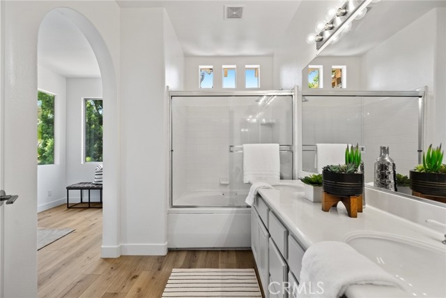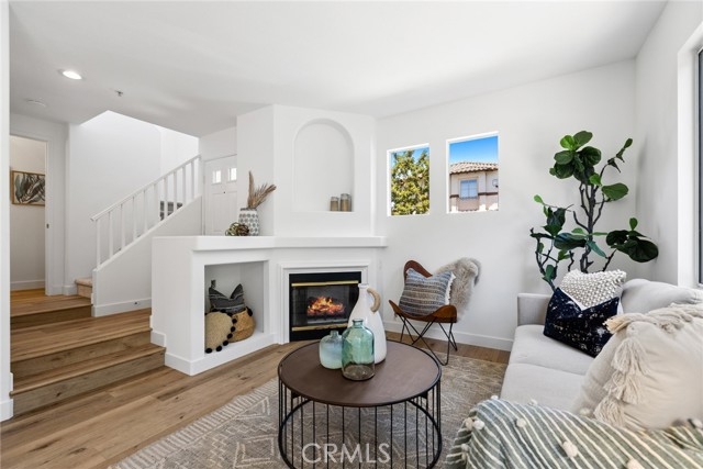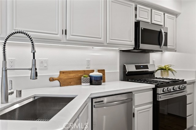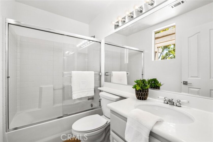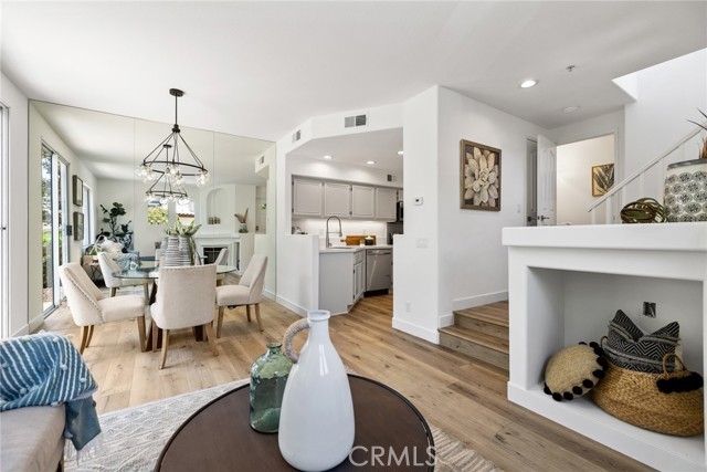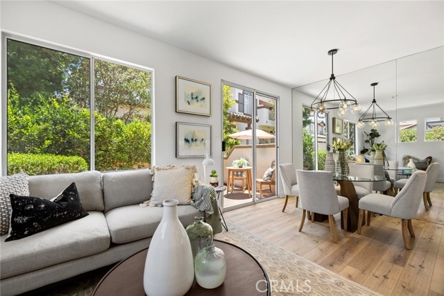 Located within the community of The Orchards of Tustin Ranch, awaits this turn-key 2-bedroom, 2.5-bath end unit 2 story townhome with partial golf course views. The home’s contemporary interiors reflect the pride of ownership with a collection of brand-new updates including luxury vinyl plank flooring, new 5-inch modern baseboards, LED recessed lighting, Kwikset door hardware, and fresh interior paint throughout. Optimal livability is achieved with direct access from a private 2-car garage into the freshly updated kitchen showcasing Quartz countertops, stainless steel Samsung appliances, and Kohler sink with modern faucet. Further along, a chandelier anchors the dining area which flows effortlessly into a fireplace-warmed living room and tranquil patio concealed by mature hedges. Ideal for guests, a powder bath and coat closet complete the lower level. Up the stairs, double-high ceilings and arched picture window introduce the second floor where a laundry closet and built-in linen cabinet service the two bedrooms, each with full bathrooms. With the spacious walk-in closet of the primary suite, and a private patio off the secondary suite, there is little left to be desired in this move-in ready home. Updated electrical plugs and switches and a new water heater are further evidence of a meticulously maintained home. Although boasting a low HOA fee of $220/month, residents of The Orchards enjoy beautiful grounds and community amenities such as a pool, spa and tennis courts. A location mere moments to the dining, shopping and entertainment of The District and Tustin Marketplace, easy access to the 5 and 55 freeways, and award-winning Tustin Unified schools make this home one that can’t be beat.