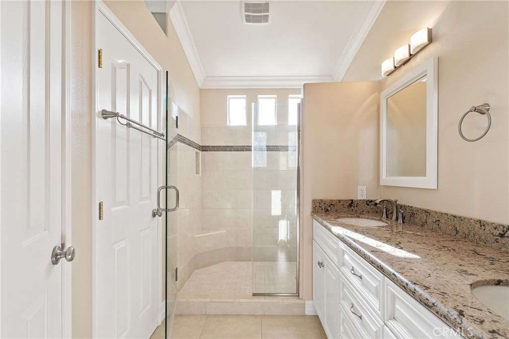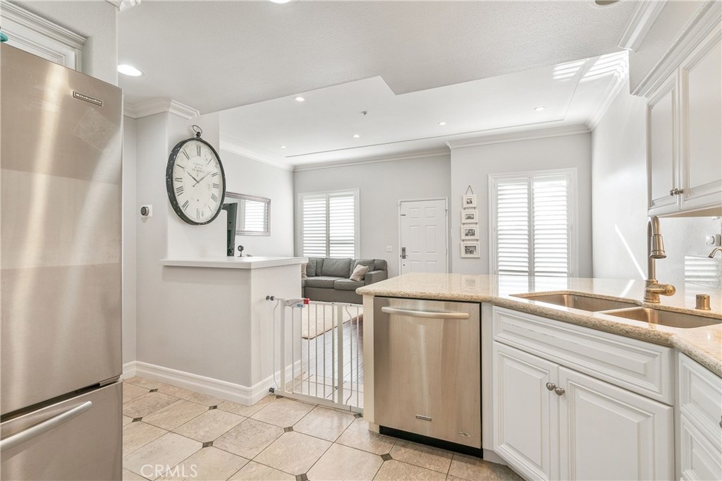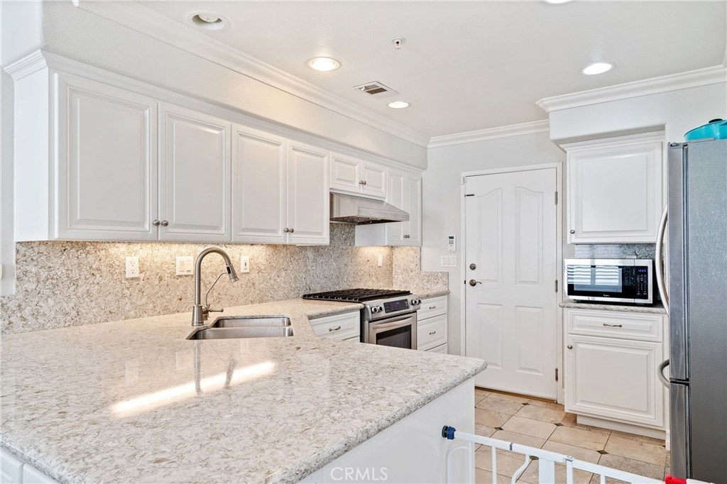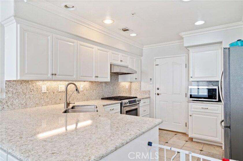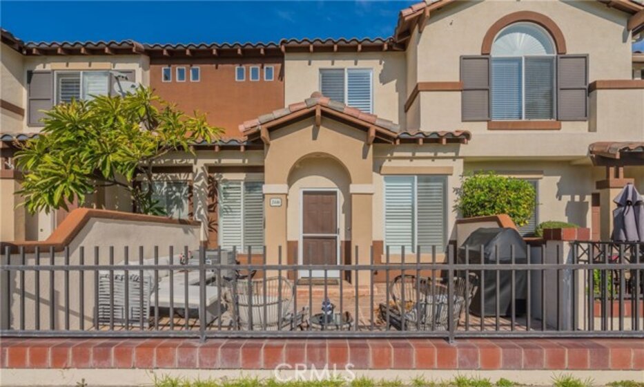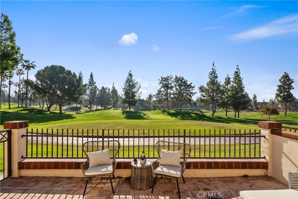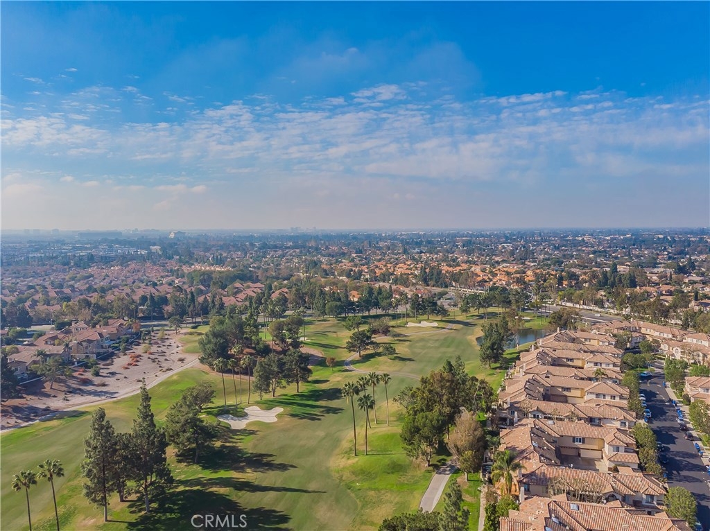 The Orchards, a quiet community located in Tustin Ranch. This lovely two-story town-home sits facing Tustin Ranch Golf Club. ON THE GOLF COURSE and VIEWS OF THE GOLF COURSE! One of the most upgraded homes facing the golf course, fabulous views, cool breezes, and move in condition! From front patio overlooking the golf course, with charming garden, enter to the light, bright freshly painted, recess lights, crown moldings, updated kitchen with newer stainless steel appliances including gas stove, microwave, dishwasher, granite counters, lots of cabinets, extra counter space, beautiful neutral tile floors also leading into powder room. Custom window coverings in the front room which you don't want to use, because you want to enjoy the view! Upstairs two master bedrooms, front master has views of golf course, updated bath with newer cabinets, granite counters, custom travertine shower, glass shower doors, dual vanities, large walk in closet, laundry area for full size washer and dryer upstairs! Second bedroom also has walk in closet, glass shower doors. The garage has built in cabinets for lots of storage. The community boasts pool, spa, tennis courts, children play ground, for low association dues! The association offers pool, spa, BBQ, tennis courts and playground. Conveniently located to freeways and toll roads, shops at Tustin & Irvine Marketplace. Your home is also part of a Blue Ribbon Award winning Tustin Unified schools. Come see this home before it's SOLD!