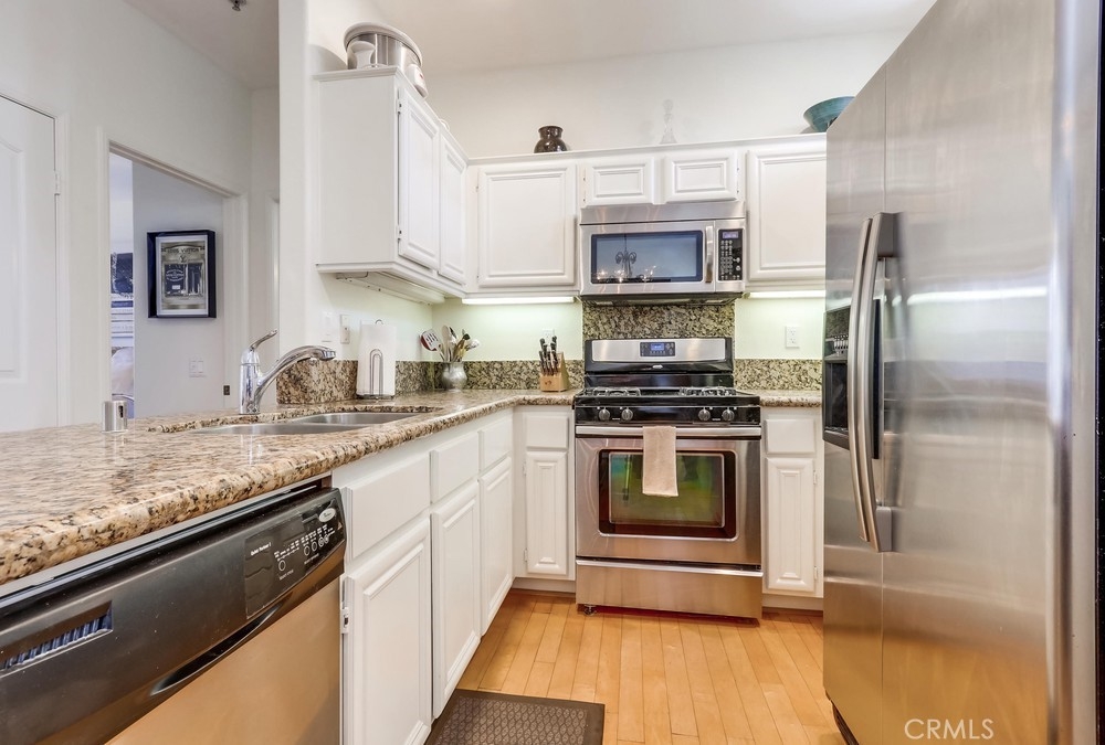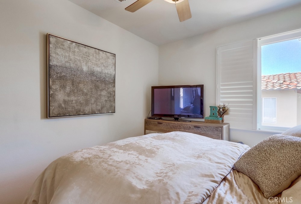 Enjoy resort-style living in a premier Tustin Ranch community, steps from the golf course, community pool, tennis courts and parks! With peek views of the 2nd hole at Tustin Ranch golf course and an open functional living area, this 2-bedroom condo at 'The Orchards' is sure to please the next lucky owner. Upgraded kitchen with granite counters, bar seating and plenty of cabinet space, open to the living room and dining area. Tall ceilings, a lot of windows and recessed lights provide a lot of light into the living area and bedrooms. Direct access from the living room to a private patio - a perfect retreat for morning coffee or entertaining. Two master suites, each with their own private bathroom. Master bedroom has dual vanities and a spacious walk-in closet with built-in organizers. Recent upgrades include: new double-pane windows, plantation shutters, new custom paint throughout and more. Washer, dryer and fridge can all be included in the sale. Direct access to a spacious 2-car garage with finished drywall, built-in shelves and plenty of room for extra storage. Enjoy all the HOA amenities, access to award-winning exceptional schools and live within close proximity to the freeway, hiking/biking trails, shops, restaurants and more....everything you need for a fun life is right out your door!