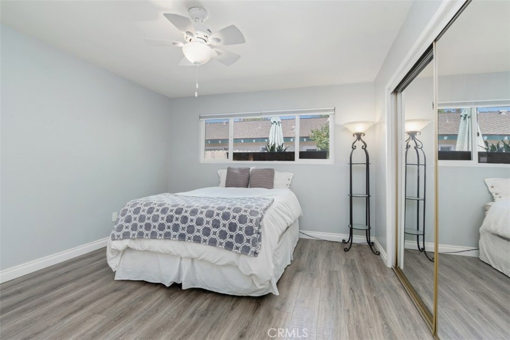 Rare single level condo featuring gorgeous newer flooring, a custom paint palette, and a one car garage plus a parking space. Located in the heart of Tustin, this condo is just a short walk away from grocery stores, bars, restaurants, the post office, the senior center, and the charming boutiques of Old Town. With its large living room, two bathrooms, and the bedrooms located at opposite sides, the layout is ideal for first time buyers who may want to take on a roommate. Empty-nesters will also love this unit: it’s a true single level and there are no stairs inside or between the nearby garage and the front door. An especially unique feature of this condo is the open kitchen with breakfast bar and the extremely spacious living room, both of which make this home great for entertaining. Spend an afternoon grilling and dining with friends on the private backyard patio, or enjoy a summer afternoon spent floating in the nearby community pool. When the weather turns chilly, cosy up with a favorite book in front of a crackling fire in the living room fireplace. The central location in Tustin is great for keeping busy with local entertainment and events: Enjoy live music at summer concerts in the park, art walks, the Chili Cookoff, the weekly organic farmer’s market and more – all just a short walk away. Low HOA dues, no Mello Roos.