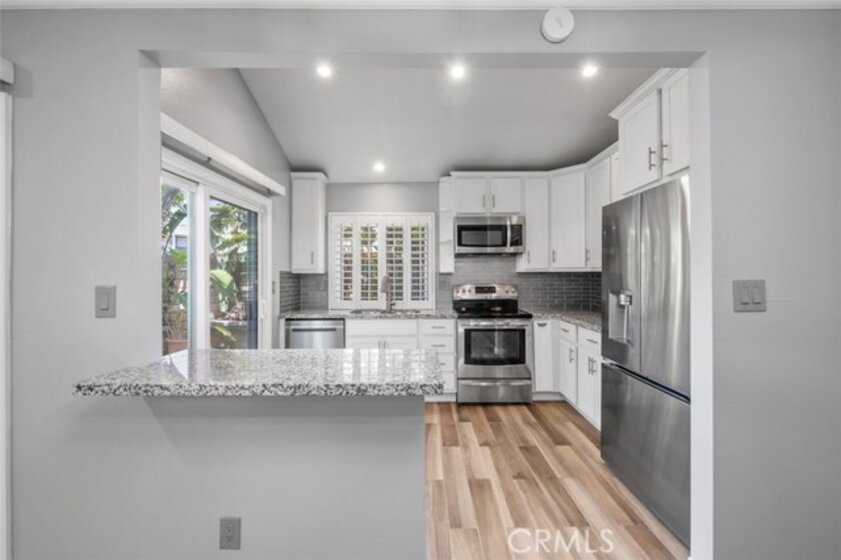 WOW! Another charming townhome located in the desirable Park Tustin community. This spacious residence features 4 bedrooms and 2.5 baths, along with one assigned parking space and a one-car garage, and is ready for immediate move-in. Enjoy the convenience of walking to the Enderle Center, offering a variety of restaurants, shops, a fitness center, and Citibank. The front yard is beautifully landscaped and provides direct access to the parking space and garage. A security door and updated entry door welcome you inside. The home opens to a bright living room with porcelain tile flooring throughout the main level and an open, inviting floor plan. Additional upgrades include newer vinyl windows and doors, accent lighting throughout the kitchen and living areas, and plantation shutters with upgraded blinds. The downstairs fourth bedroom includes an upgraded half bath and offers flexible use. The kitchen features porcelain tile flooring, a vinyl sliding door, and upgraded appliances including a dishwasher, stove, refrigerator, and microwave. An upgraded stairway leads to the second floor, where you’ll find three additional bedrooms and two full baths, along with accent lighting and ceiling fans. All interior doors are custom. The primary bedroom includes vinyl windows and flooring, along with an upgraded bathroom featuring a new vanity, toilet, and shower. This well-maintained home combines comfort, style, and a prime location in Park Tustin.