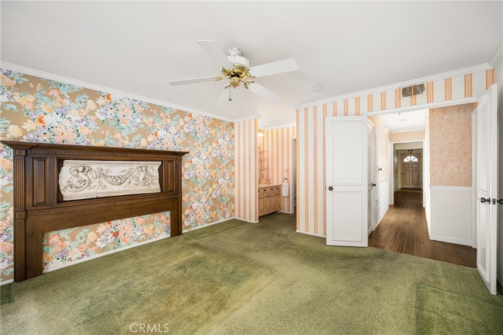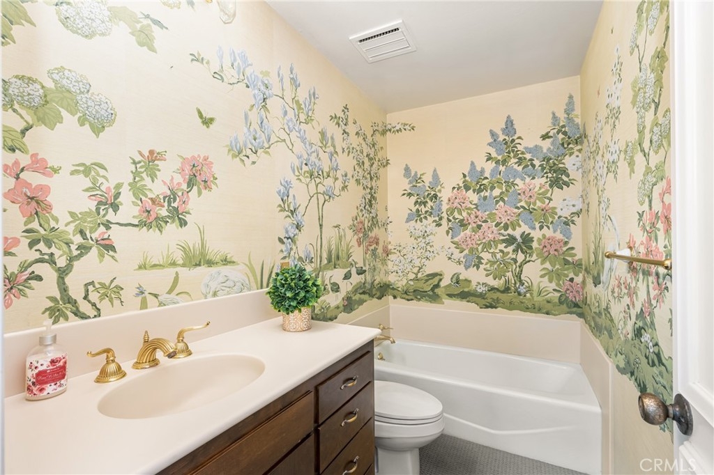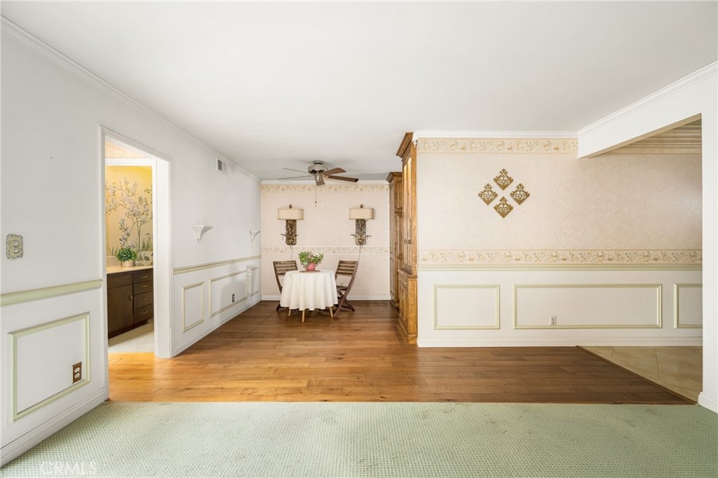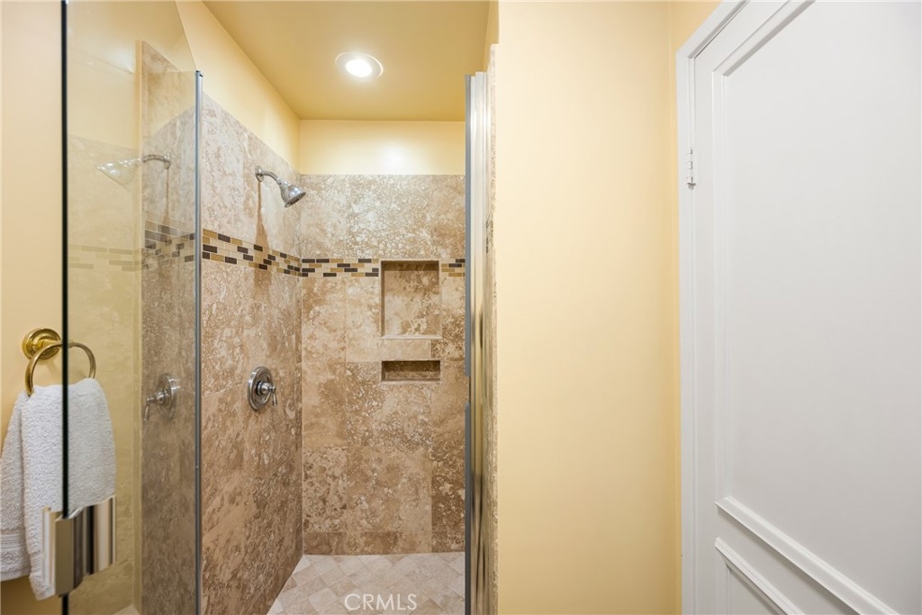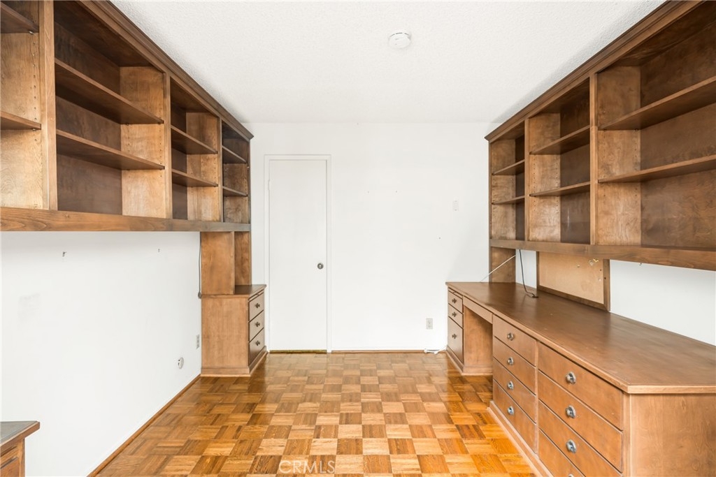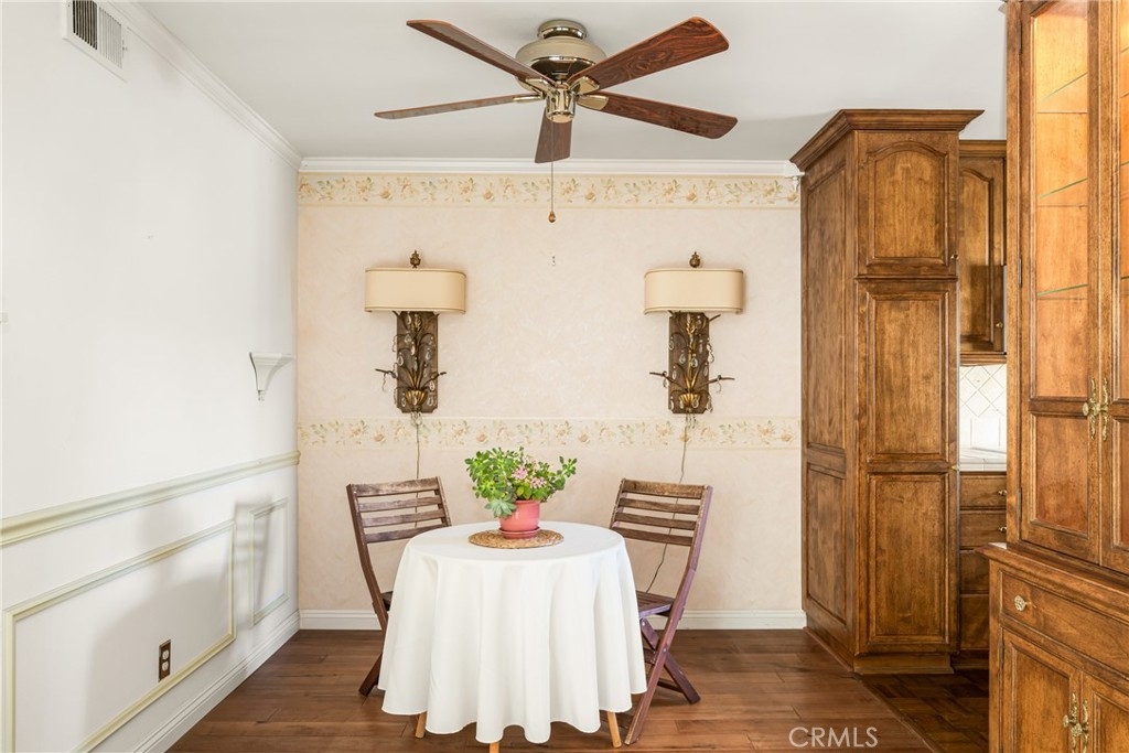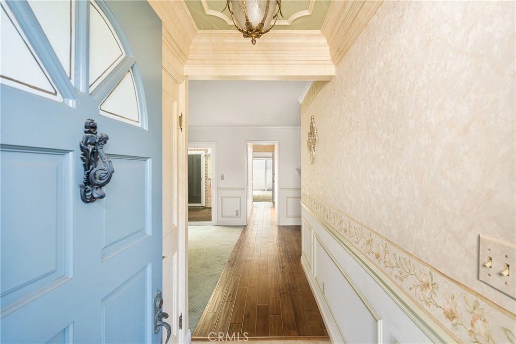 Welcome to the Park Tustin Community where properties seldom hit the market! This 2 bed, 2 bath single level condo is nestled in a highly desirable neighborhood close to shopping, dining, freeway access and sought after schools. The front living room boasts a beautiful custom built-in entertainment center complete with fireplace & bookshelves creating a warm and relaxing atmosphere. The adjacent dining area with wood plank laminate flooring features a built-in buffet cabinet to display your special treasures. The chef of the home will love the kitchen with rich wood cabinets, tiled counter tops & backsplash, and white appliances. The guest bath with tub has a custom wallpapered mural and dark wood vanity. The rear primary bedroom with attached bathroom has access to the fenced rear patio with artificial turf and stone paver sitting area. A beautifully tiled walk-in shower with glass enclosure is located in a separate area from the custom vanity and changing area. The 2nd bedroom offers large built-ins and a desk area for working from home, or a great reading retreat. The center atrium with access from the living room and 2nd bedroom, allows wonderful natural light to flow through the home. A European fountain adds to the charm of this additional outdoor space. An attached 1-car garage houses the washer and dryer hook ups and an extra parking space is conveniently located just outside the front door. Air conditioning, dual pane windows and doors, ceiling fans, walk-in closet, wood wainscoting and more! This community also offers an association pool, spa and clubhouse for your enjoyment!