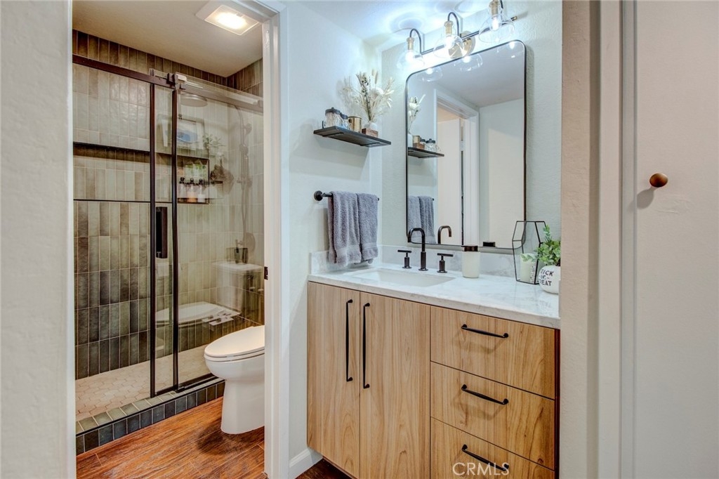 Rare opportunity to purchase in Quail Meadows HOA. The unit boasts a remodeled bathroom, new windows, new quartz countertops in kitchen, central A/C, private balcony, and 1 car garage. The condo is located in the desirable Tustin Unified School District with lots of dining and shopping options within walking distance. Easy access to 55 FWY and just minutes from 5 FWY and 22 FWYs. HOA amenities include community pool/spa and tennis court; Low HOA dues and no Mello Roos!