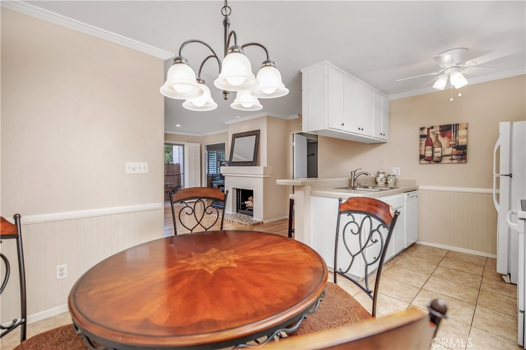 A Charming Tustin Ground Level Condo in the Desirable Community of Quail Meadows. Walk to ENDERLE CENTER with Many Restaurants, Shops, Fitness Center and Bank. Open the Door to Soft Earth Tones and Plantation Shutters. Wood Laminate Flooring with Porcelain Tiles and New Carpet in the Master Bedroom. Upgraded Fireplace & Mantle. Open Floor Plan and a Great Cross Ventilation. Also A Dedicated Garage Facility Parking Space. This End Unit has a Nice Patio too.