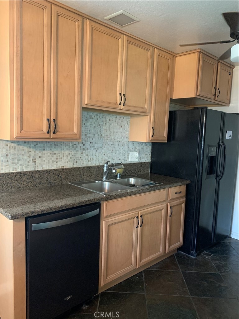 PRIME LOCATION IN THIS COTTAGE, BUNGALOW STYLE CONDO. Single story no one above or below and in back. END UNIT. Located next to shuffle board and steps to Community laundry facilities, parking structure has open parking on upper level and gated area is assigned parking. Private and surrounded by trees and lawn area. Community Association has Fenced Tennis Court, Community Pool. "A Diamond in the rough" (needs paint and carpet, some cosmetic) but a some major items renovated. Kitchen cabinets have been replaced, stainless steel sink and Whirlpool Dishwasher, granite counters. Plantation shutters added, MBR shower has been retiled, Dining Area has a grandfathered window added for lots of light only unit in tract with this window. Two Private Patios one in front and one in back with sliding doors. Hard surface flooring except bedrooms need carpet. Fireplace in Living Room. Priced to sell below recent comps. Homeowner Association Dues include Water, and trash and outside lighting.