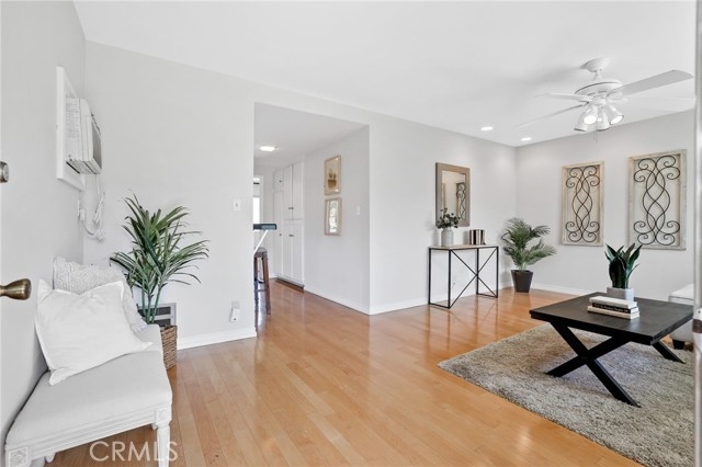 This lovely upper-level condo is light and bright and offers fresh designer paint, maple laminate floors, large bay window in living room, ceiling fans in both the bedroom and the living room, recessed lighting, granite counter tops in kitchen, vaulted ceilings, vinyl sliding door to balcony off dining area, mirrored wardrobe in bedroom. One assigned carport, and ample parking for guests throughout the community. A storage compartment is located in the carport. This fully gated and private community comes complete with a large laundry facility, association pool and spa. The HOA dues include water, gas and trash. Freeway close and just minutes away from Tustin District Marketplace for shopping, dining and entertainment.