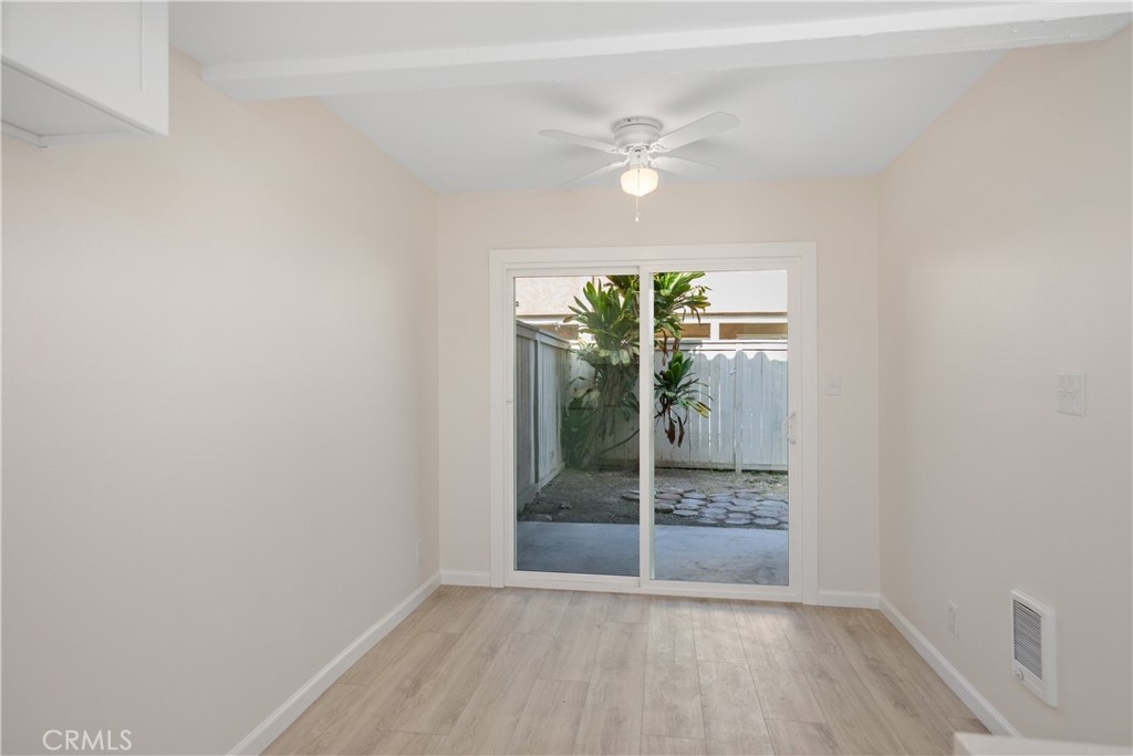 Step into this incredible one bedroom, one bathroom condominium nestled in the gated community of Rancho San Juan, right in the heart of the vibrant city of Tustin. You'll be stepping into a blank canvas, ready for your personal touch. This home has been completely remodeled from top to bottom, offering the perfect backdrop for your unique vision. As you enter, your eyes will be drawn to the beautiful, completely remodeled LVP wood flooring, and fresh designer paint that creates a light and bright ambiance throughout. The living area is generously sized, featuring a charming bay window that overlooks the community pool. This unique feature not only adds character but also allows natural light to flood the space, making it feel even more inviting. The kitchen opens up to the dining area, creating a seamless flow. With a glass slider leading to the backyard, you can easily transition from indoor to outdoor living. The backyard offers great potential and is waiting for your creative vision to transform it into your own outdoor oasis. The spacious bedroom is a highlight of this condo, offering a view of the yard. It provides ample space for your comfort and convenience and is equipped with two closets, ensuring that you have plenty of storage for your belongings. The complex itself is a tranquil haven, surrounded by lush lawns and trees. Meandering pathways provide the perfect setting for leisurely walks. Parking is a breeze with an assigned carport and ample guest parking throughout the complex. Location-wise, you're in for a treat. You'll enjoy easy access to major freeways, top-notch schools, beautiful parks, shopping centers, restaurants, and the vibrant Tustin Marketplace – all just a stone's throw away. This one bedroom, one bathroom condo in Rancho San Juan offers a peaceful and well-located living space, with a blank canvas for your creative ideas. Completely remodeled throughout with new flooring and fresh paint, it's an opportunity you won't want to miss!