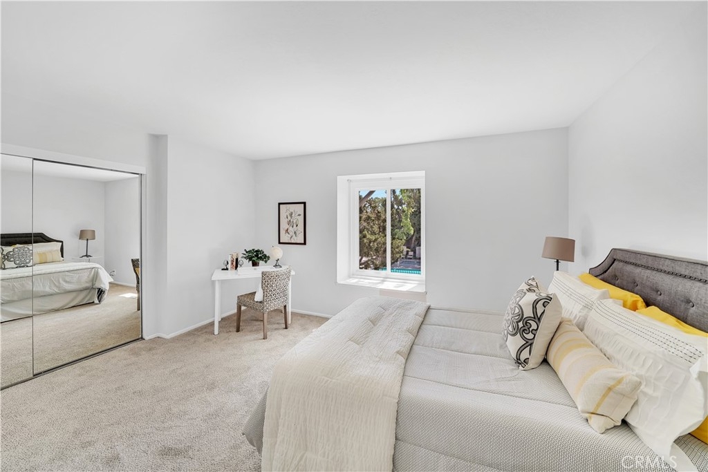 Welcome home to 13722 Red Hill Ave Unit 22, a beautiful Rancho San Juan condominium right in the heart of Tustin. This upstairs condo home features 2 en-suite bedrooms (meaning each have their own bathroom) with spacious closets, natural light entering the dual pane windows, and with serene views from the front bedroom to the pool and common area. The layout of this home lends to comfortable living, as the living room with a shiplap vaulted seating area and bar flows into the dining area, directly off of the kitchen. Other amenities include central heating and a/c, Milgard windows and slider, fresh carpet, paint, and scraped ceilings all this summer, and has 1 carport. Rancho San Juan community is conveniently located a few miles from everything really, namely Disneyland, beaches, Tustin Marketplace and District for shopping, dining, library, and schools. The community features a serene lifestyle surrounded by a lush greenbelt, pool, and outdoor fireplace and lounge. Do not miss out on this opportunity to live in Tustin, known for its school district, city life, and a vibe that is worth staying to enjoy. Come see today!