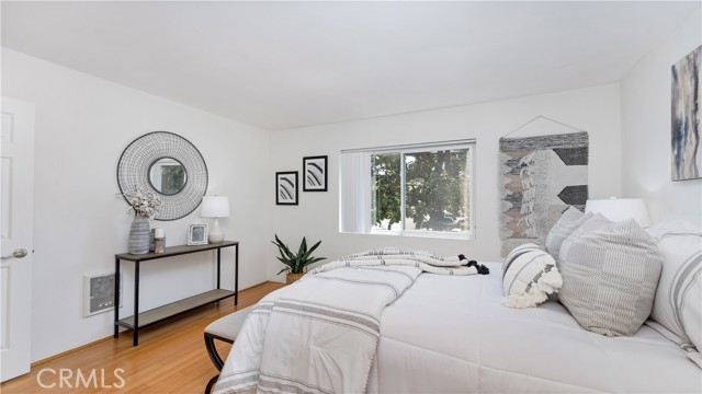 Welcome home to 13722 Redhill #38, a charming 1-bedroom, 1-bathroom UPSTAIRS UNIT nestled within the peaceful gated community of Rancho San Juan in the heart of Tustin. This cozy unit features a bright and cheery living room with a large window offering views of the community and pool, a well-equipped kitchen, and a dining area with vaulted ceilings that open out to a spacious balcony. Next to the dining area, is an inviting primary ensuite complete with 4 piece bathroom and dual closets for ample storage. This unit has been recently painted and offers bamboo flooring throughout the main living areas. Rancho San Juan offers a park like setting with mature trees and grassy common areas in addition to a community pool and laundry room. HOA dues include water, trash, gas in addition to insurance. Conveniently located within walking distance of dining and shopping, near the 5 Freeway, and minutes from The Tustin Ranch Golf Course, The Marketplace, and District at Tustin Legacy. This is a great opportunity for a first time home buyer or investor. Don't miss out on the chance to call 13722 Redhill Ave #38 your new home!