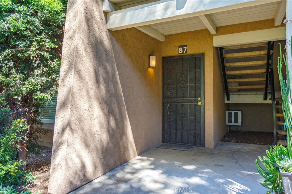 This 1 Bed 1 Bath condominium is located in the fully gated community of Red Hill Avenue in Tustin. The location of the condo is in one of the most desired locations in the community, the front view is the serene lawn and trees and the patio backs to the quietest private community street with high fence for privacy, the perfect spot in the house to enjoy your first cup of coffee. This beautiful home has one master bedroom and one full bathroom with mirrored walk-in-closets. The home has shiny laminate floors, recessed lighting, crown molding and fresh coat of crisp white designer paint. One assigned corner carport for parking with storage and ample parking for guests inside and outside the community makes this condo more valuable than others around the neighborhood. This fully gated community offers pool & jacuzzi for recreation and has a large laundromat for its residents.The HOA includes not just all the amenities but also water, gas and trash. Few minutes away from the freeway and the Tustin Marketplace for all your entertainment needs.