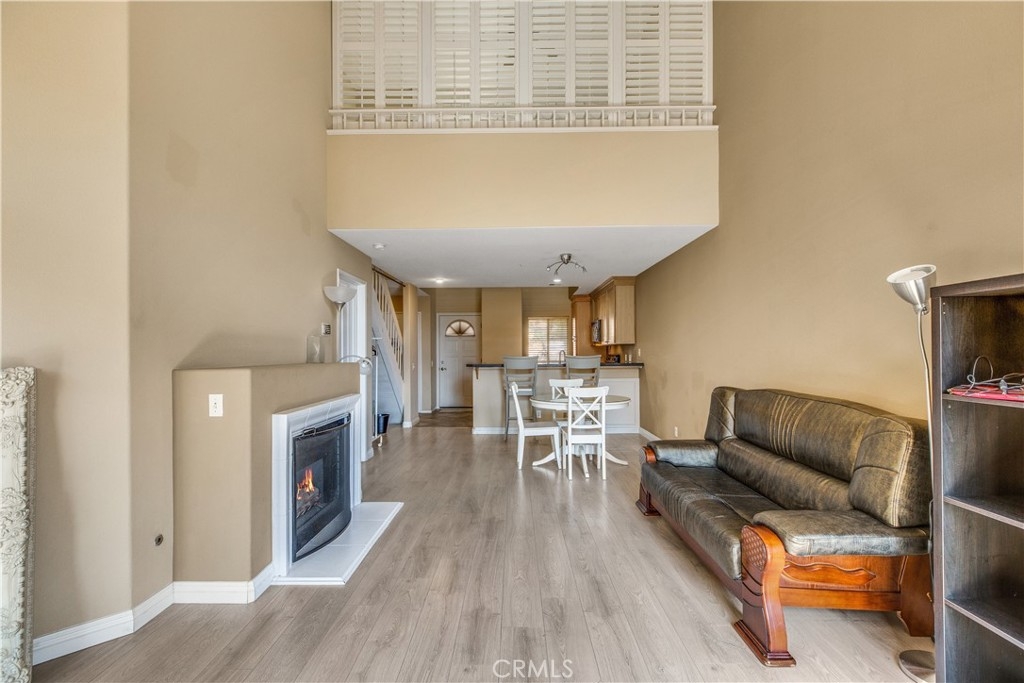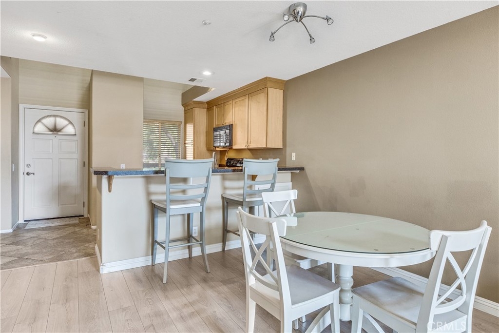 Experience luxury living in Tustin Ranch Rancho Veracruze with this stunning 2-bedroom, 1-bathroom condo. This home is uniquely designed with a loft that has been turned into a spacious bedroom, complete with a small closet, adding versatility and style to the living space. As you enter the home, you'll be greeted by the spacious living room with its soaring cathedral ceilings and beautiful laminate flooring. The first bedroom is located on the lower level, providing added privacy and convenience for family members. Upstairs, you'll find the loft that has been converted into a spacious bedroom, complete with a small closet, perfect for a home office or additional guest room. The bathroom has been recently updated with modern fixtures and finishes, adding to the contemporary feel of the home. The gourmet kitchen is a chef's dream, featuring brand new stainless steel appliances, including a refrigerator and dishwasher, and plenty of counter and storage space. Other recent upgrades include new doors and shutters, as well as central air conditioning for your comfort. This condo also boasts in-house laundry, making everyday chores a breeze. Located in a peaceful and quiet community with Pools and SPA and GYM room, this property provides the perfect sanctuary from the hustle and bustle of everyday life. Enjoy easy access to the nearby Irvine/Tustin marketplace and the 5 freeway, making commuting and shopping a breeze. Whether you're a first-time buyer or looking to downsize, this beautiful condo is perfect for anyone seeking comfort, convenience, and style. Don't miss out on this incredible opportunity to own your dream home. Contact us today to schedule a viewing!