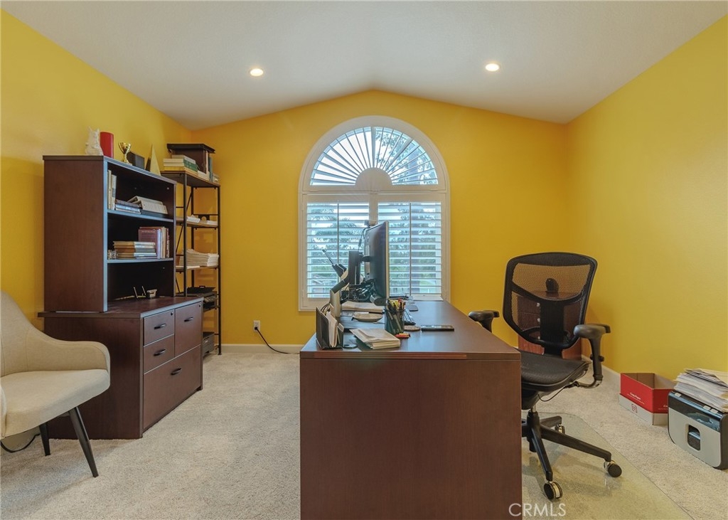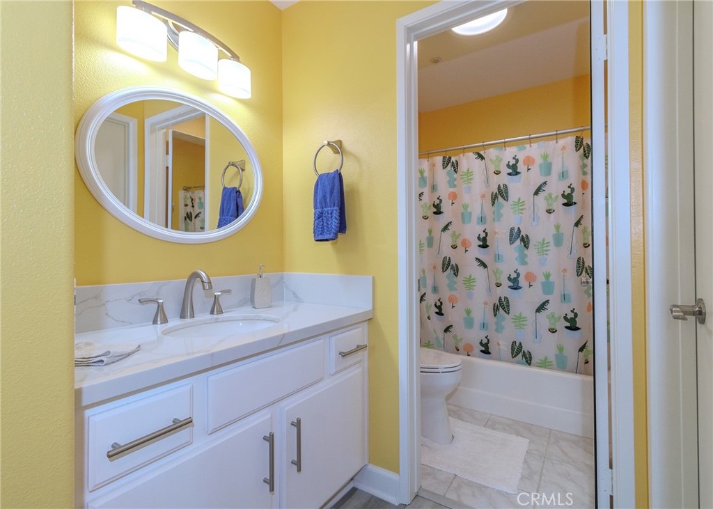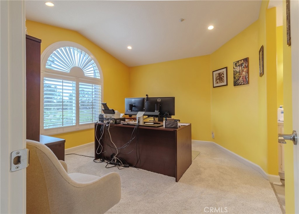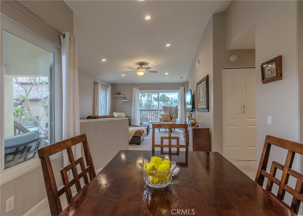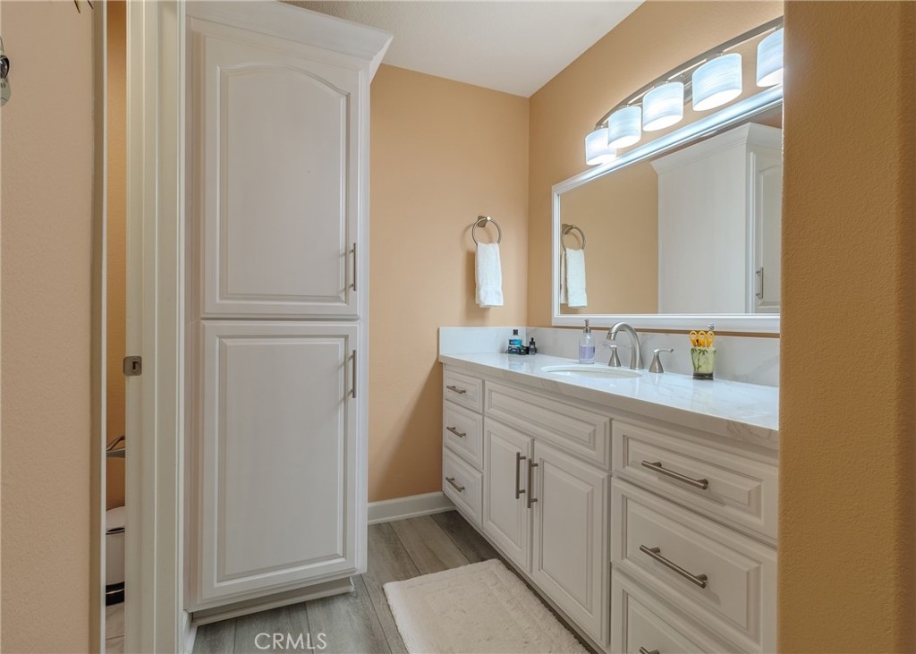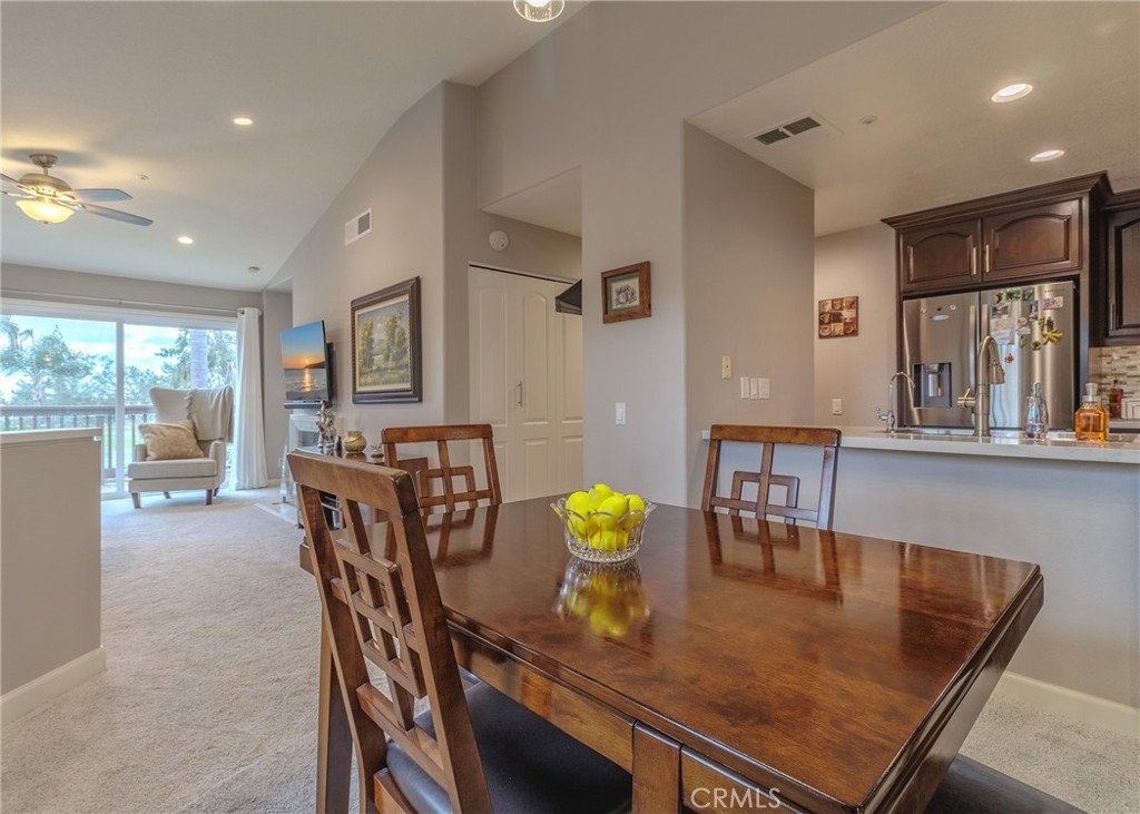 Welcome home to the luxury condominium located in the community of Rancho Vera Cruz, in Tustin. This upper corner condo faces the serenity of the pool area and amazing views of the golf course. Walking up to the condominium you will find a manicured green belt, the pool area and magnificent view of the golf course. As you enter the property you will find the living room featuring custom paint, dual pane windows, recessed lighting and a cozy fireplace. The living room flows nicely into the dining area leading into the custom kitchen. The gourmet kitchen features large cabinets, a built-in sink, a pantry and quartz countertops- breakfast nook counter. Inside laundry room with built-in cabinets. This unit features 2 master suites with walk in closets, tile shower and quartz countertops. Step outside the patio area facing the pool and spa, enjoy the greenery making this home perfect for relaxing. Property is an upper level corner unit with complete privacy. Park inside the manicured 2 car garage, with built-in cabinetry and epoxy flooring. Too many other amenities to add, this is a must see home!