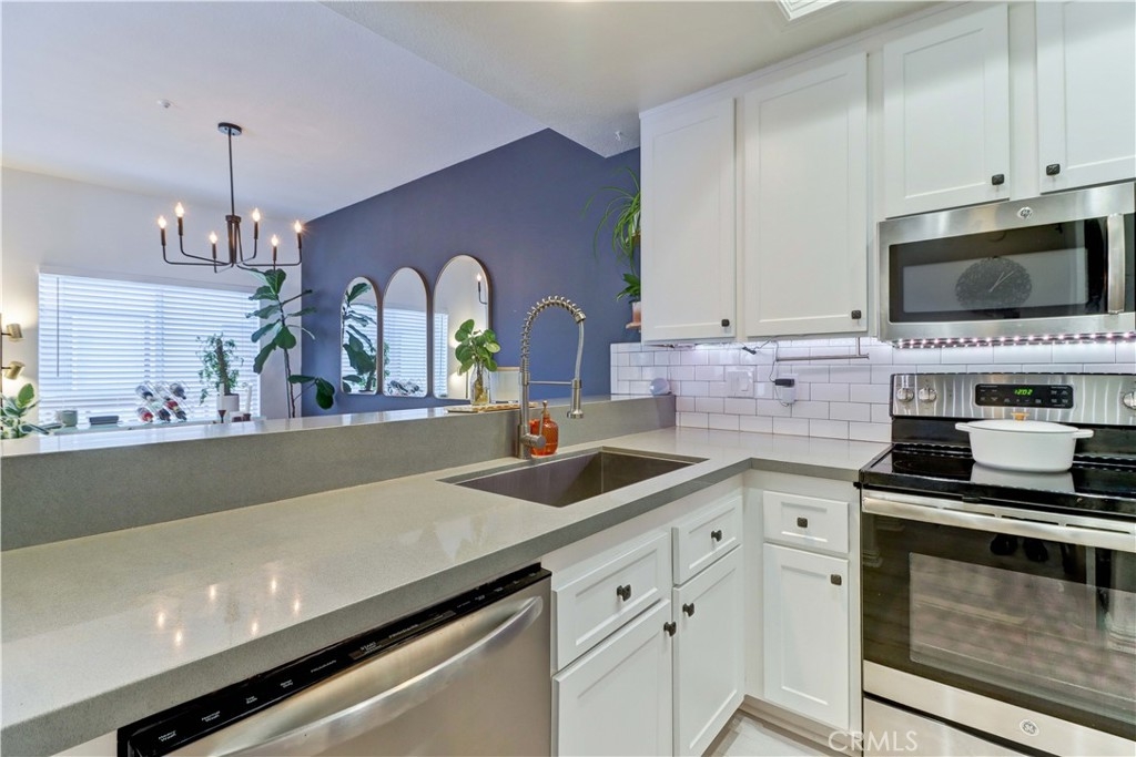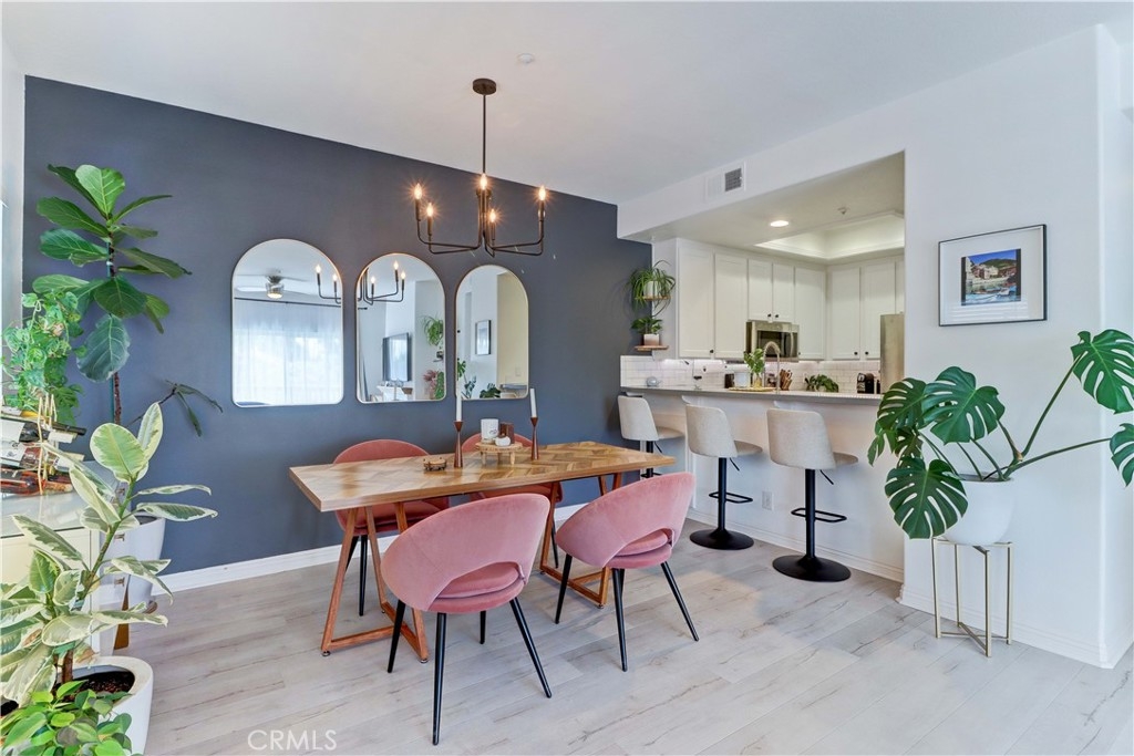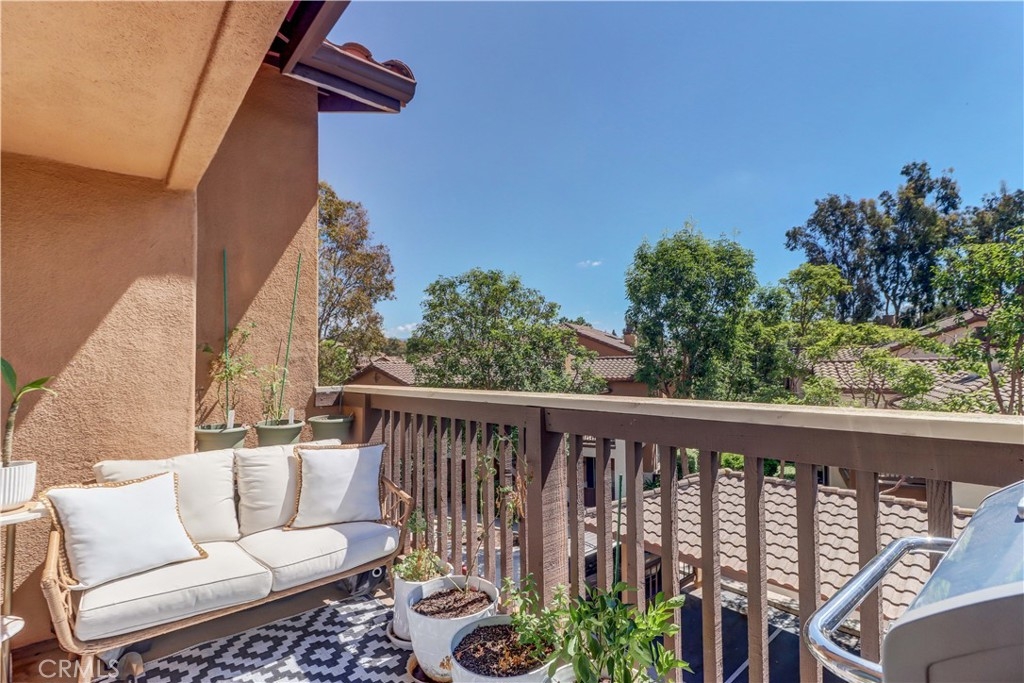 Welcome to Rancho Veracruz, a highly sought-after golf course community! This top-floor, one-bedroom home offers peace and privacy with no one above you, an abundance of natural light, and tranquil tree-top views. The inviting living room features a charming fireplace. The dining area is spacious enough for both a table and a home office setup, and it flows effortlessly into the kitchen with a convenient breakfast bar. Recent upgrades include durable vinyl flooring, an updated kitchen, and a modern bathroom vanity. The bedroom is designed for comfort with two closets, including a walk-in with mirrored doors, while built-in cabinets near the bathroom provide plenty of linen storage. An in-unit laundry adds to the ease of everyday living. Perfect for entertaining, the open-concept layout seamlessly connects the kitchen, dining, and living spaces, and the private balcony is ideal for barbecues or simply relaxing outdoors. Community amenities include two sparkling pools with spas, a fitness center, and a clubhouse. Water and trash service are included in the HOA dues, and your conveniently located carport (#389) is just steps away. This home is the perfect combination of comfort, convenience, and resort-style living at Rancho Veracruz. Don’t miss your chance to make it yours!